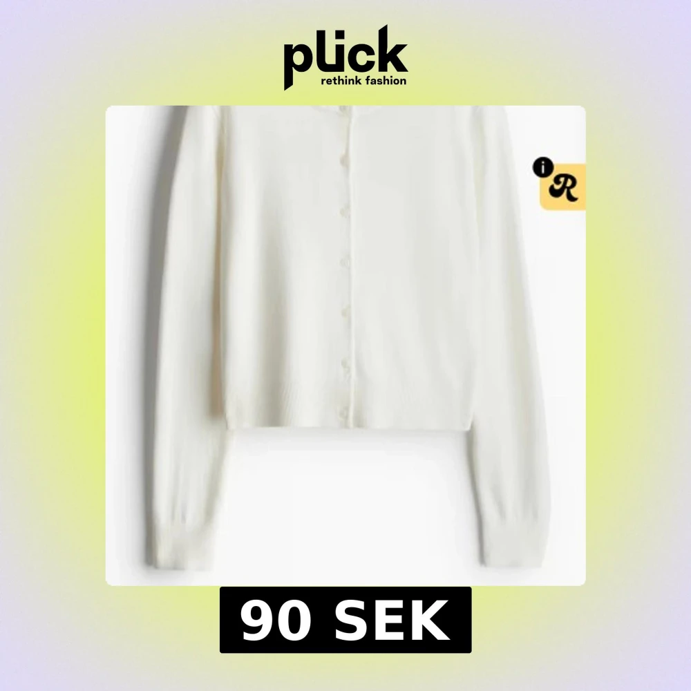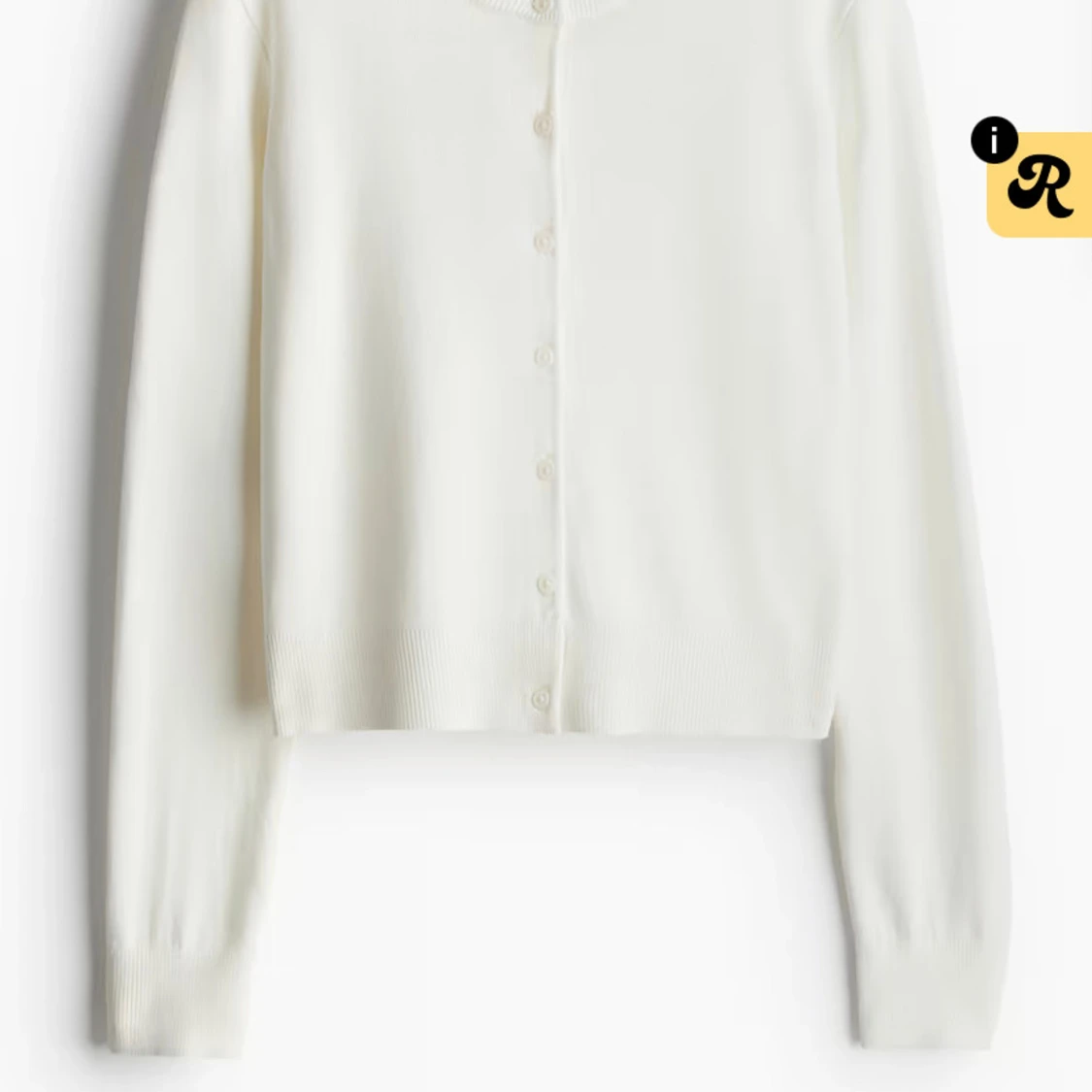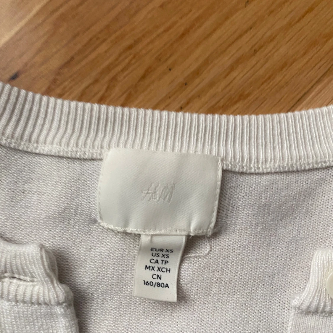 Snygg vit kofta från H&M i storlek XS. Modellen är croppad med långa ärmar och knappar framtill. Perfekt att slänga över ett linne eller t-shirt. Mjuk och tunn, passar bra till både jeans och kjol.