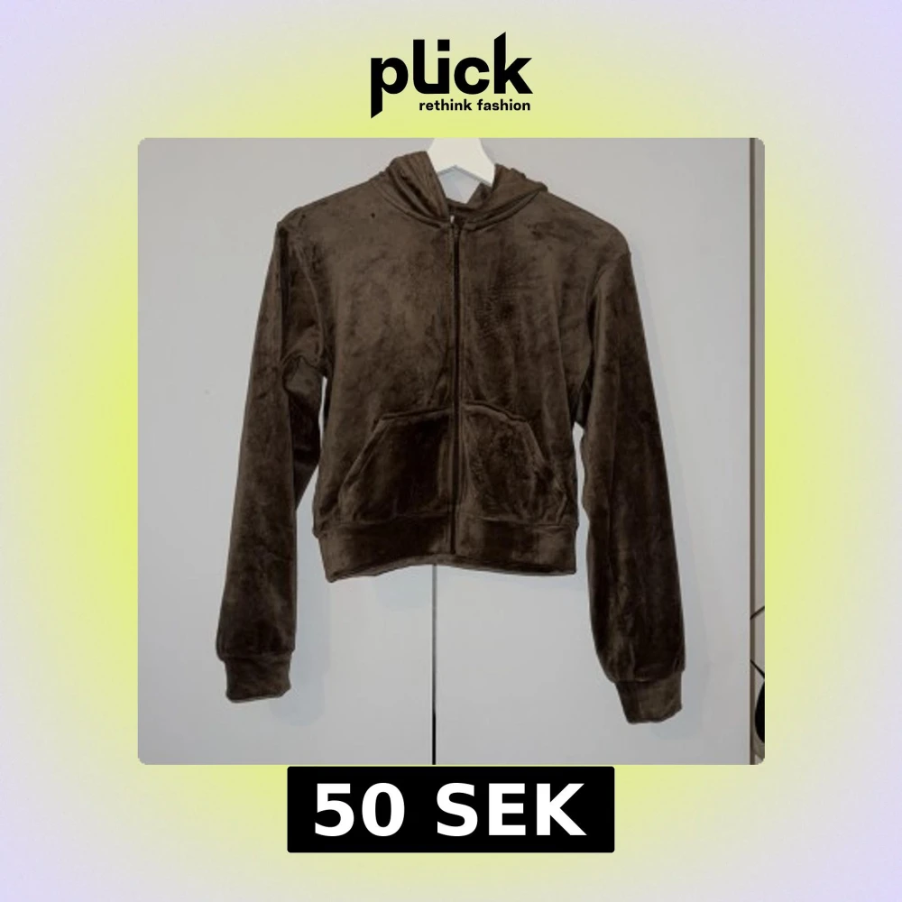 Mysig brun fleecejacka med huva och dragkedja framtill. Jackan har två fickor på magen och långa ärmar med muddar. Perfekt för kyliga dagar när du vill vara både bekväm och snygg.