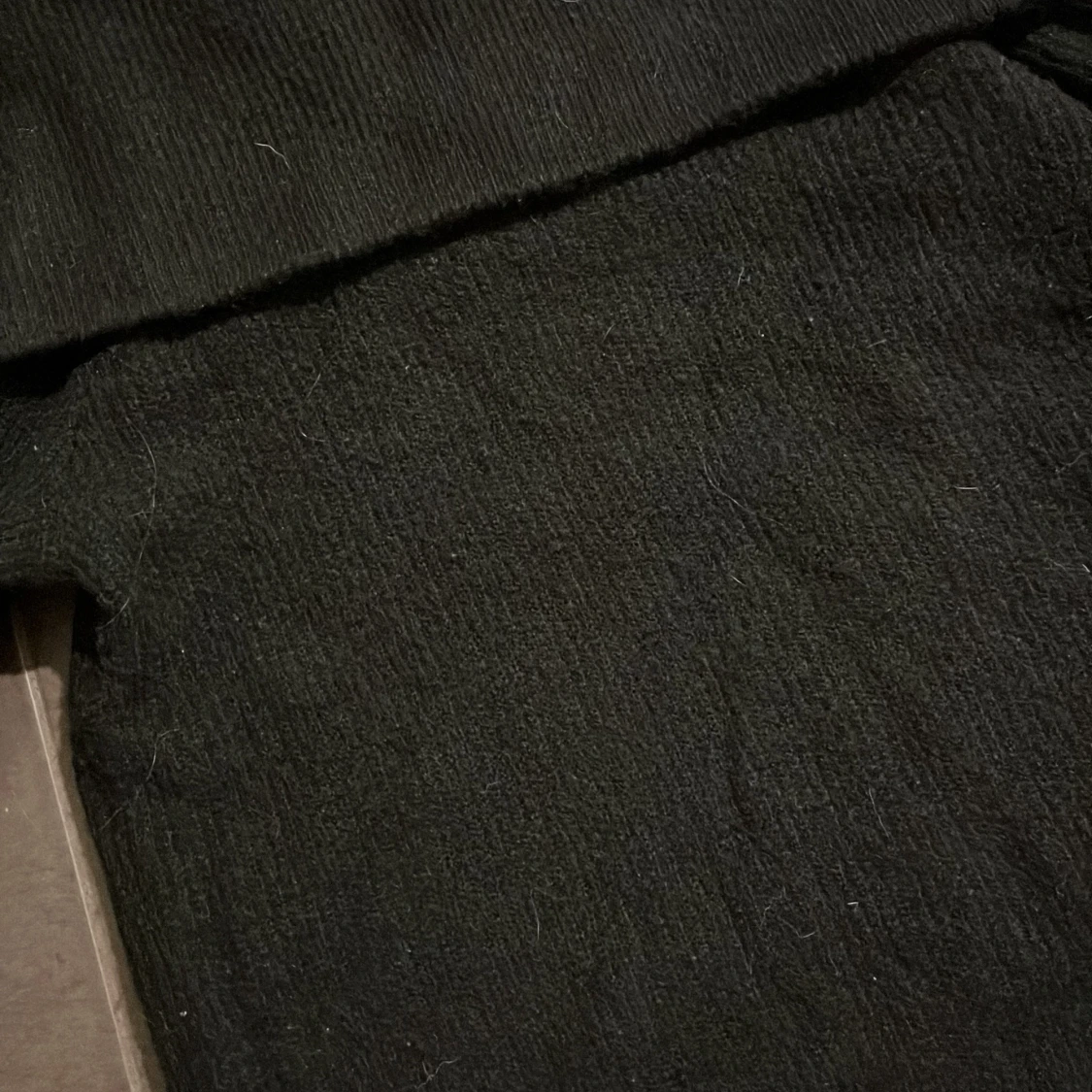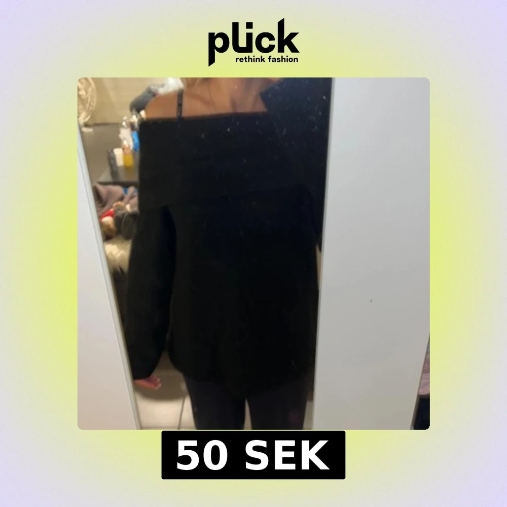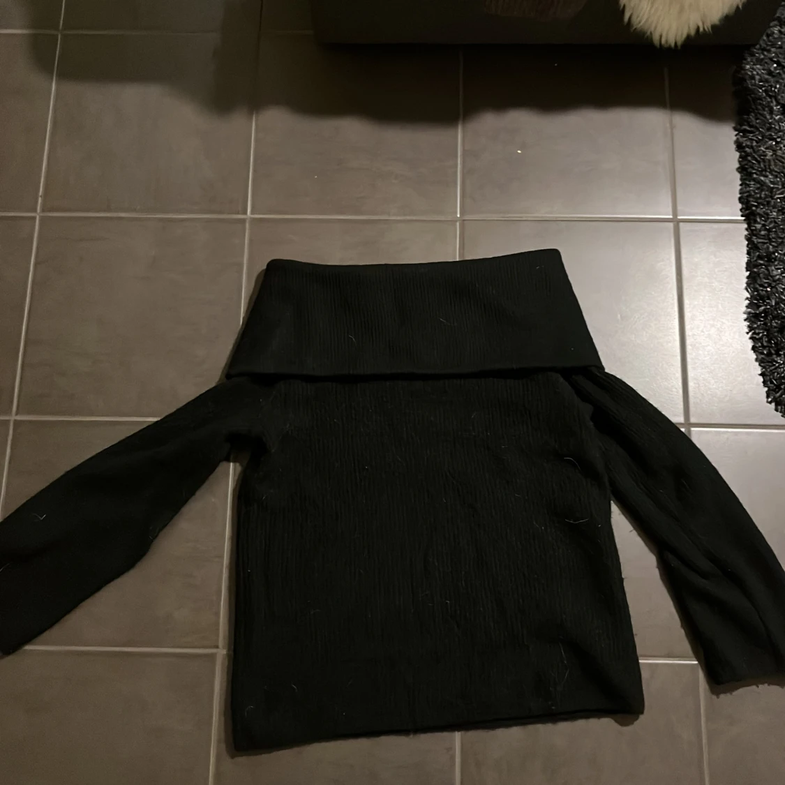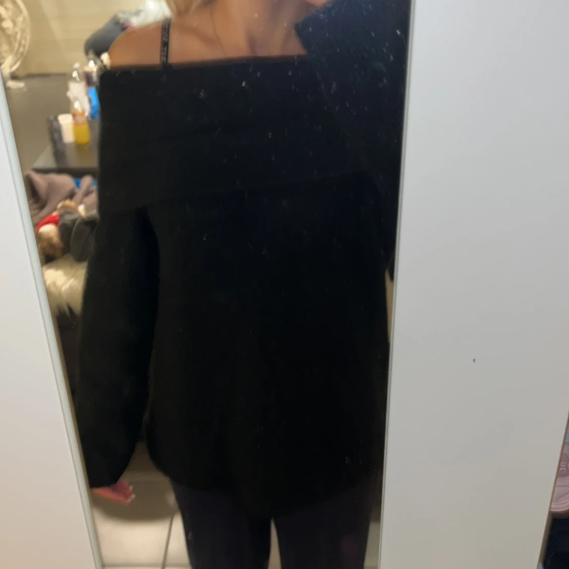 Svart stickad tröja från H&M i storlek XS. Tröjan har en bred offshoulder-krage och långa ärmar. Mjuk och skön känsla, perfekt för kyligare dagar. Enkel att styla med både jeans och kjol för en trendig look.