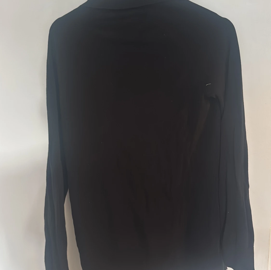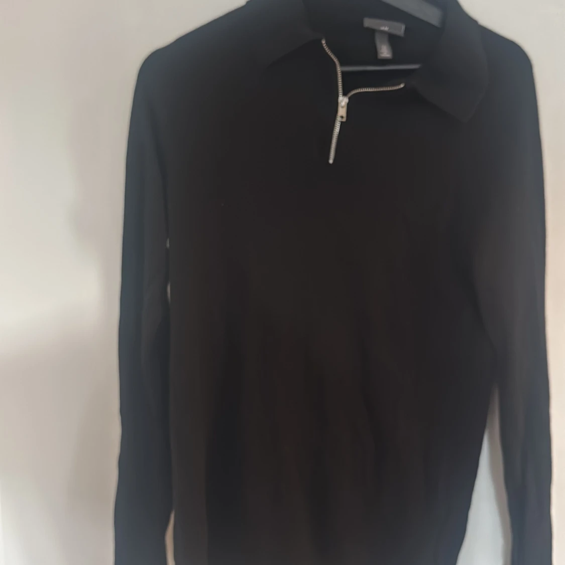 Svart långärmad tröja från H&M med klassisk krage och snygg half zip-dragkedja framtill. Enkel och stilren modell som passar perfekt till jeans eller chinos. Mjuk och skön känsla, perfekt för lager-på-lager under höst och vinter.