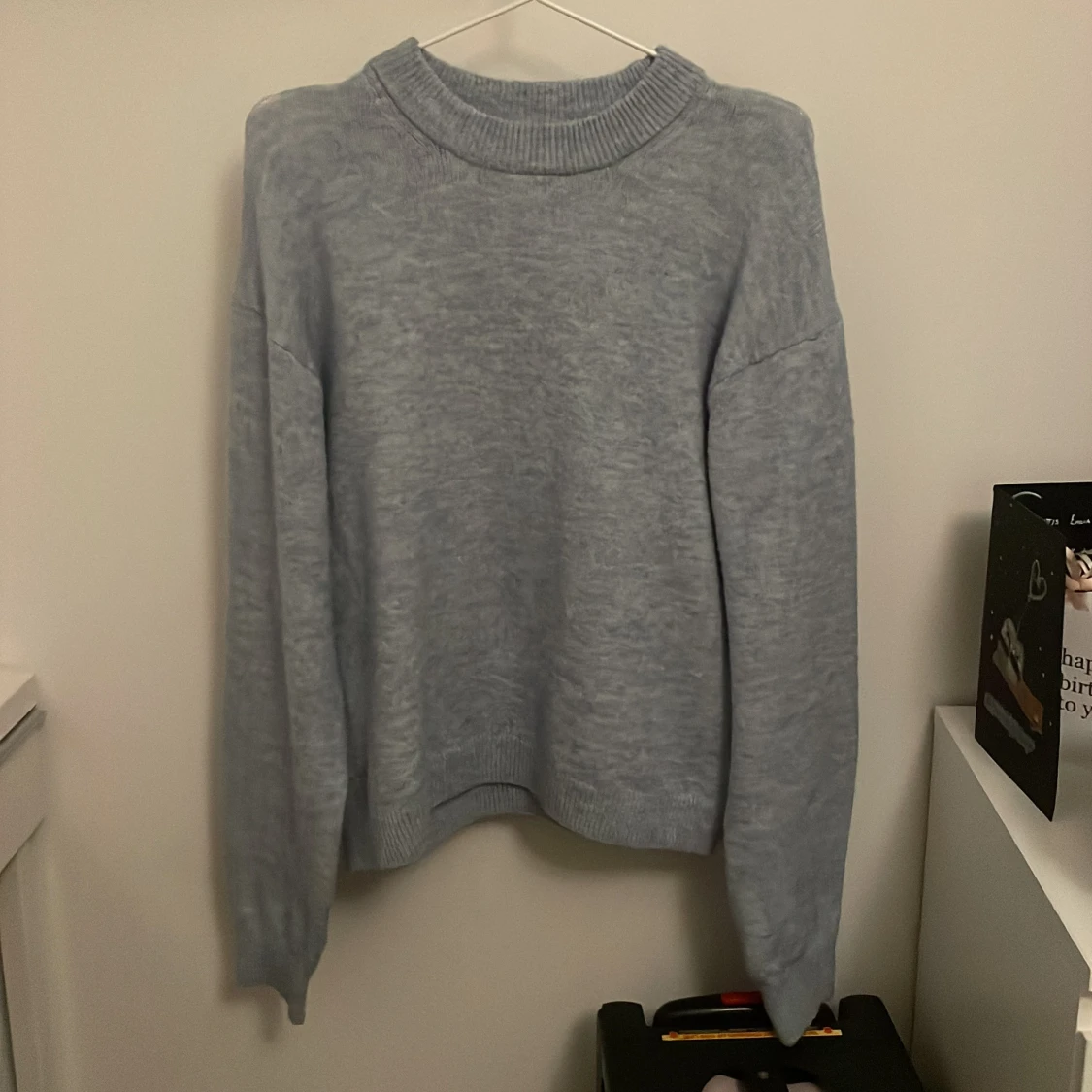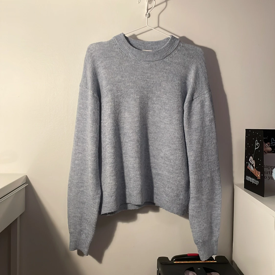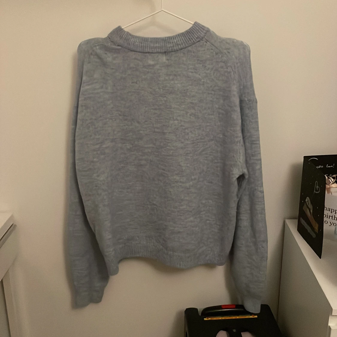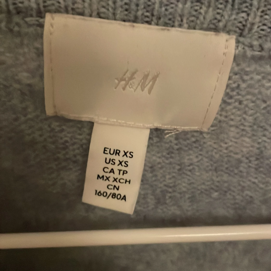 Mysig ljusblå stickad tröja från H&M i storlek XS. Tröjan har rund halsringning, ribbade muddar och långärmad passform. Enkel och stilren design. Endast använd en gång💗