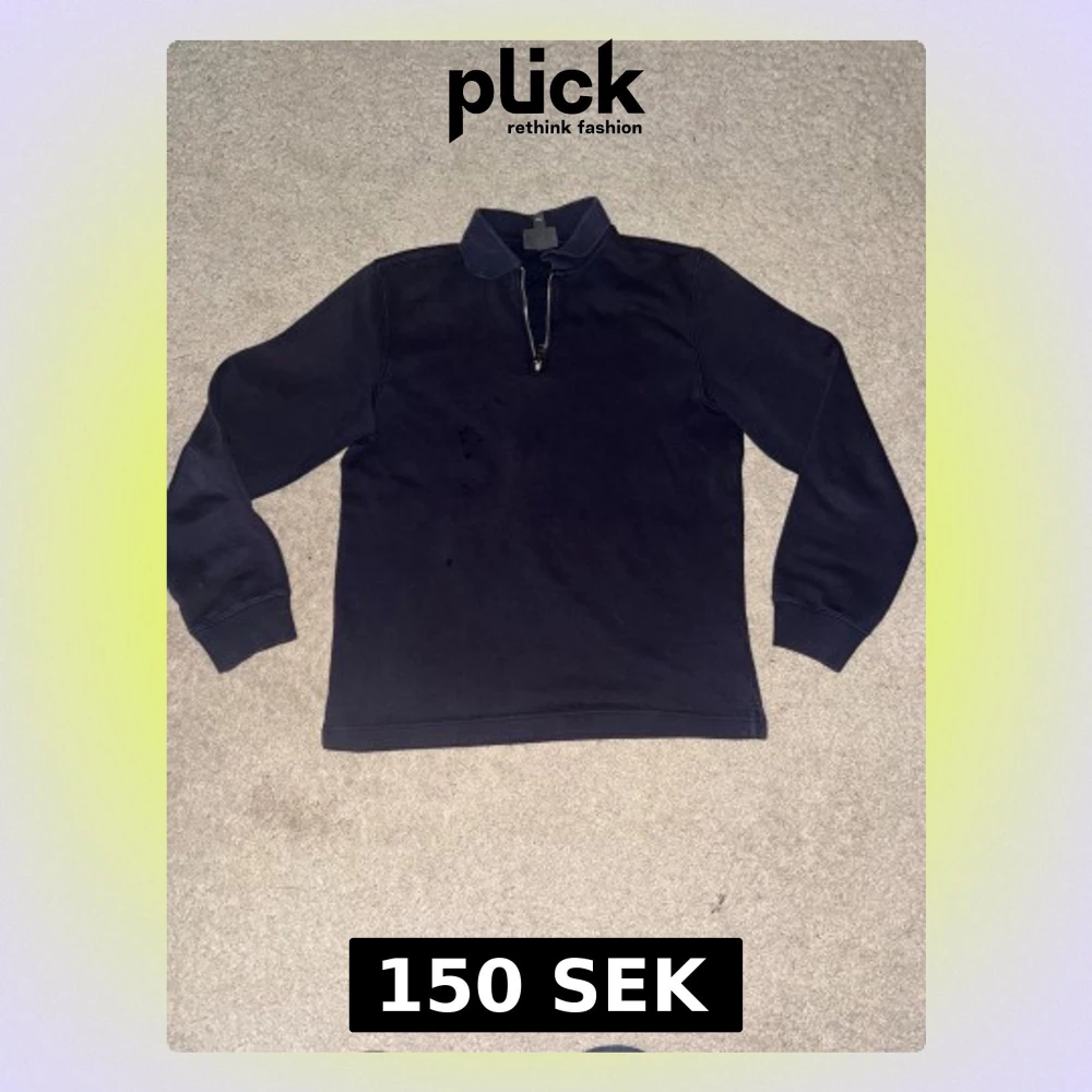 Snygg mörkblå långärmad tröja från H&M med regular fit. Tröjan har en klassisk krage och half zip-dragkedja framtill. Materialet är mjukt och känns som bomull, perfekt för kyliga dagar. Passar dig som gillar enkel och stilren look.