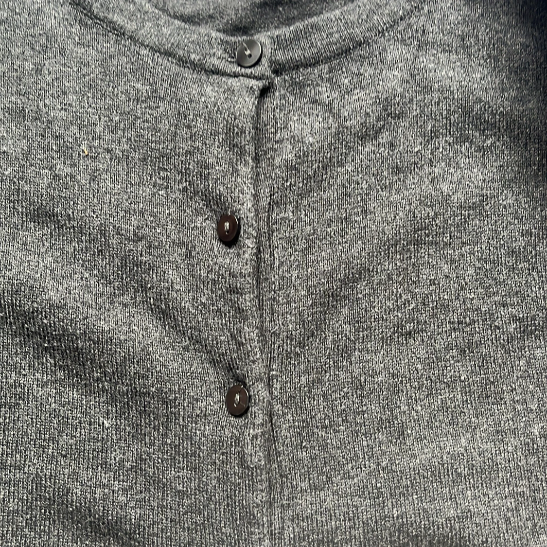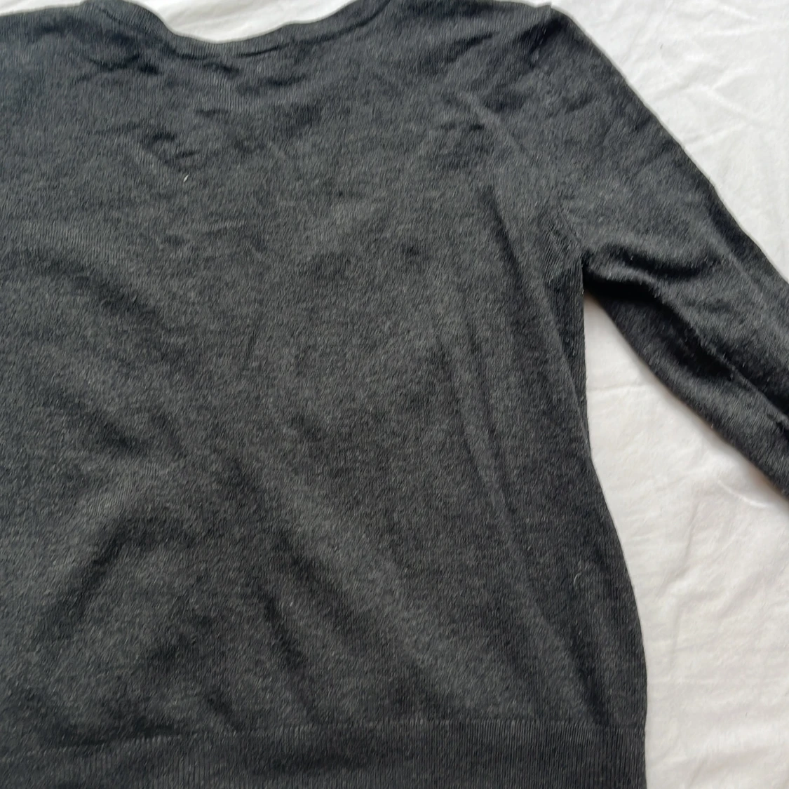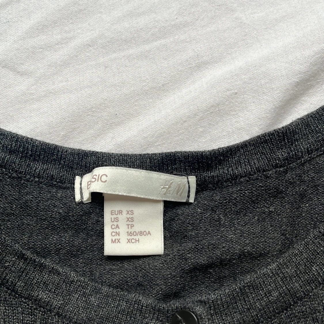 Mysig mörkgrå kofta från H&M i storlek XS. Den har rund halsringning, långa ärmar och knäppning framtill med små knappar. Materialet är mjukt och stickat, perfekt att slänga på sig över en t-shirt eller linne.
