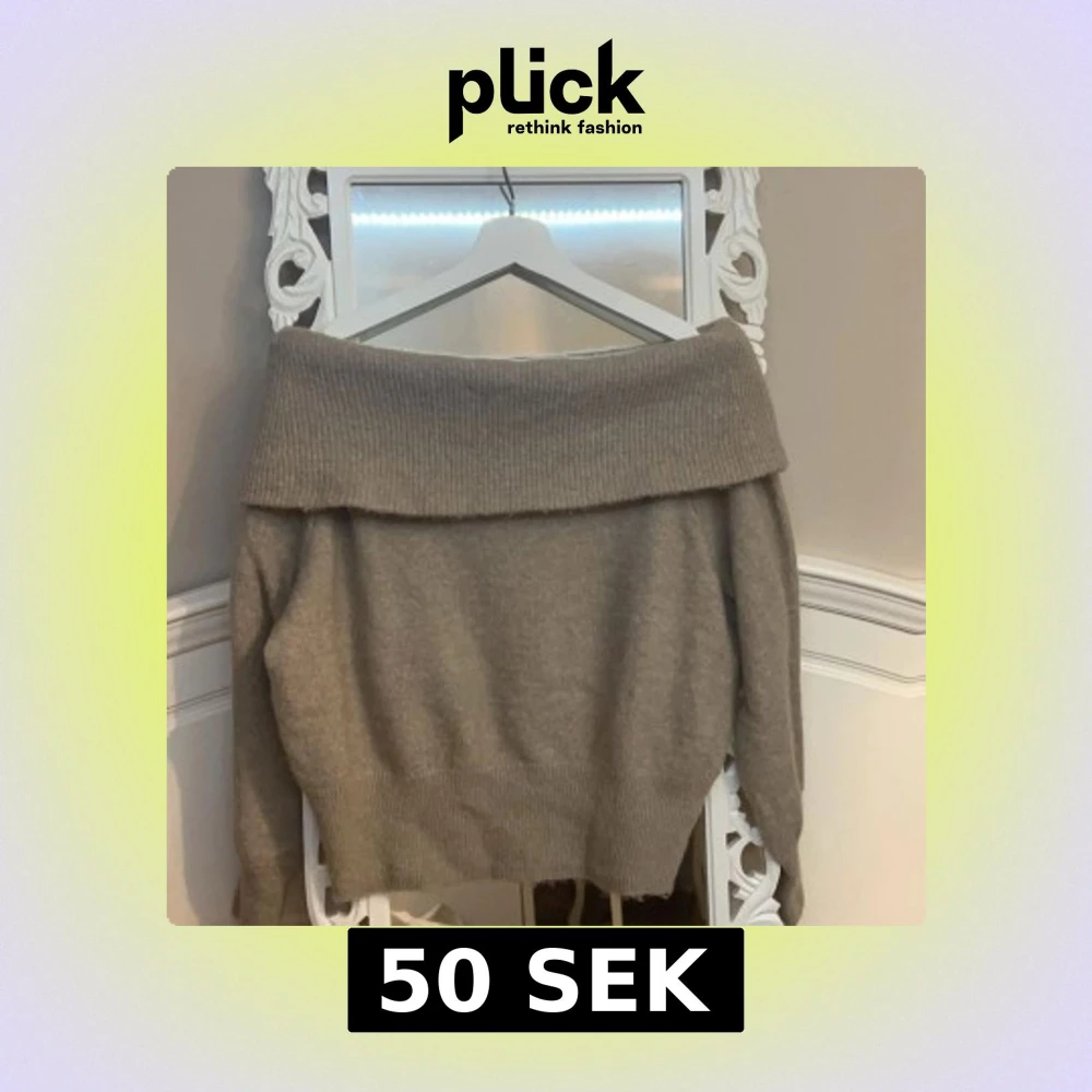 Säljer en stilren beige offshoulder tröja från H&M. Tröjan är stickad och har långa ärmar, perfekt för kyligare dagar. Den breda kragen ger en snygg och avslappnad look. Passar utmärkt till både jeans och kjol.