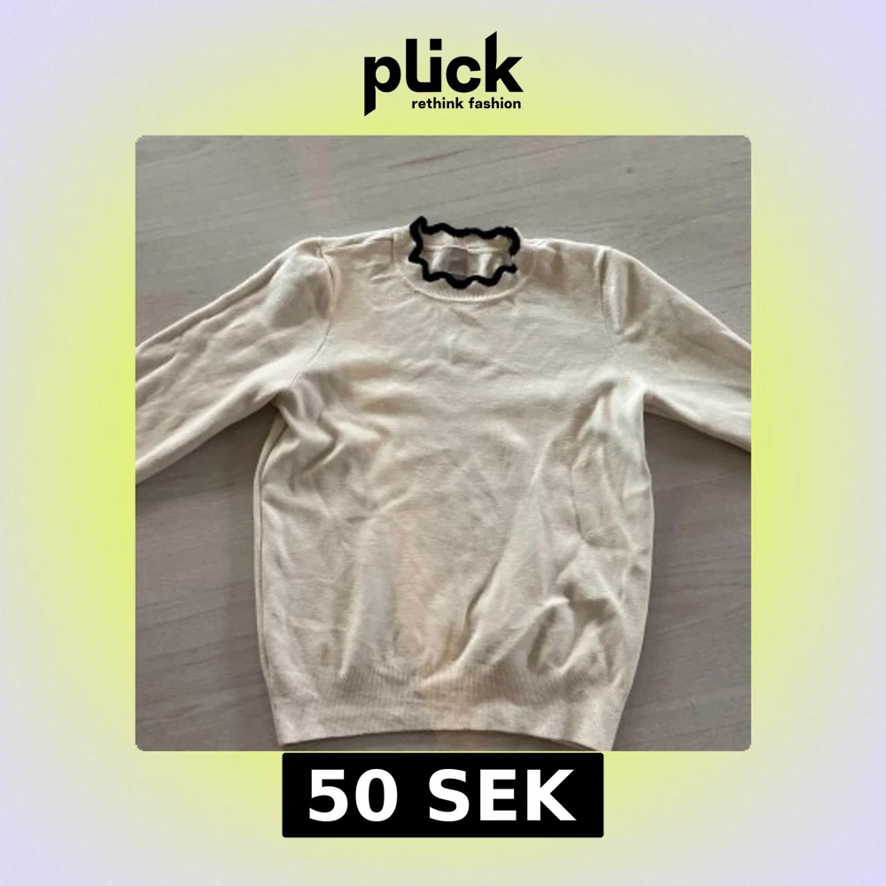 Snygg vit långärmad tröja från H&M i mjuk bomullsmix. Tröjan har en unik volangkrage med svart kant som ger en cool kontrast. Perfekt för dig som vill ha en enkel men ändå speciell look. Normal passform och ribbade muddar.