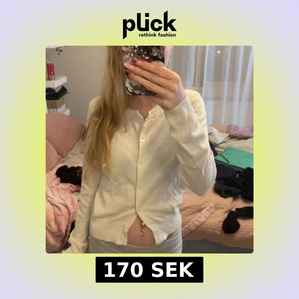 Säljer en enkel och fräsch vit kofta med rund hals och knappar hela vägen framtill. Koftan har långärmad design och är gjord i mjukt material som känns skönt mot huden. Perfekt att slänga på sig när det är lite kyligt ute.