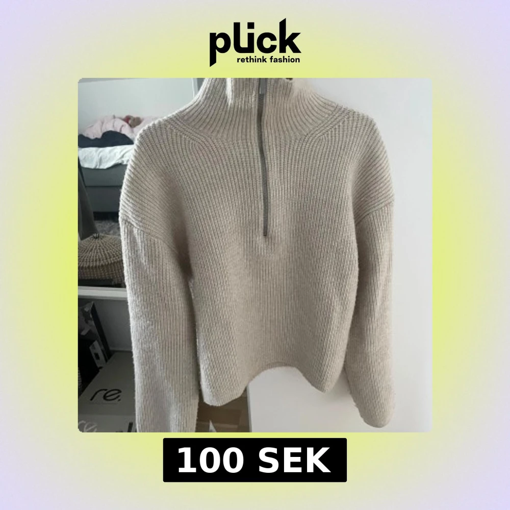 Beige stickad half zip-tröja H&M XS
