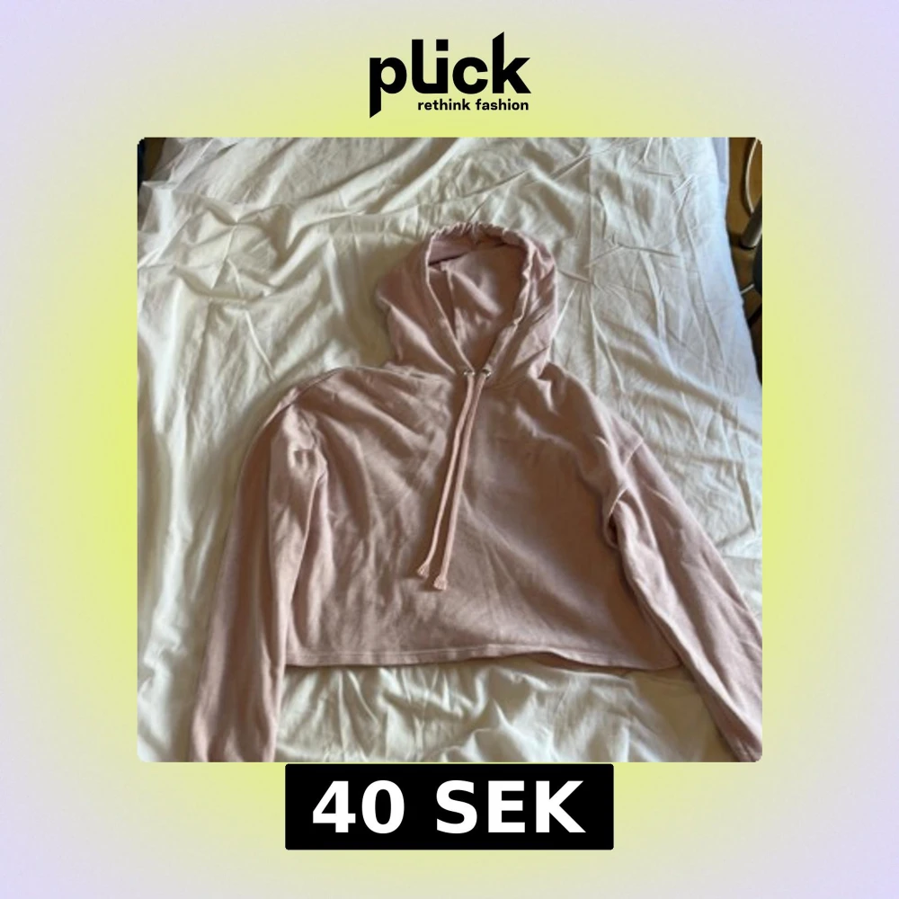 Säljer en ljusrosa croppad hoodie med långa ärmar och ribbade muddar. Tröjan har en klassisk huva med snörning och är tillverkad i mjuk bomullsmix. Perfekt för en chill och avslappnad stil.