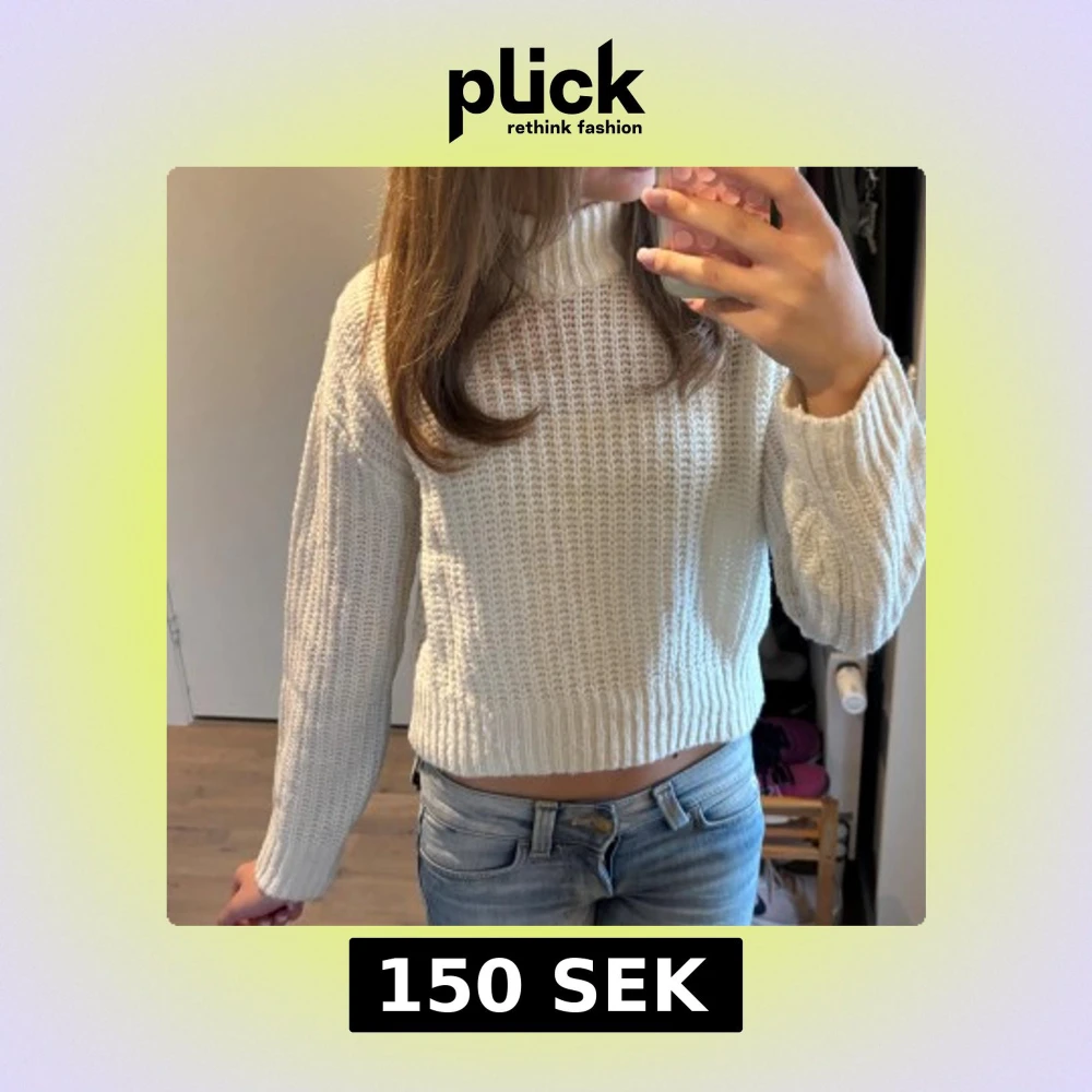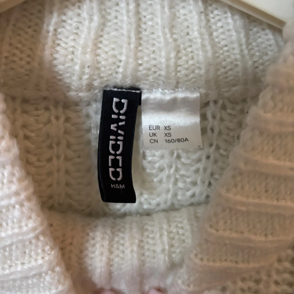 Säljer en vit stickad polotröja från H&M i storlek XS, superfin till hösten och vintern❤️