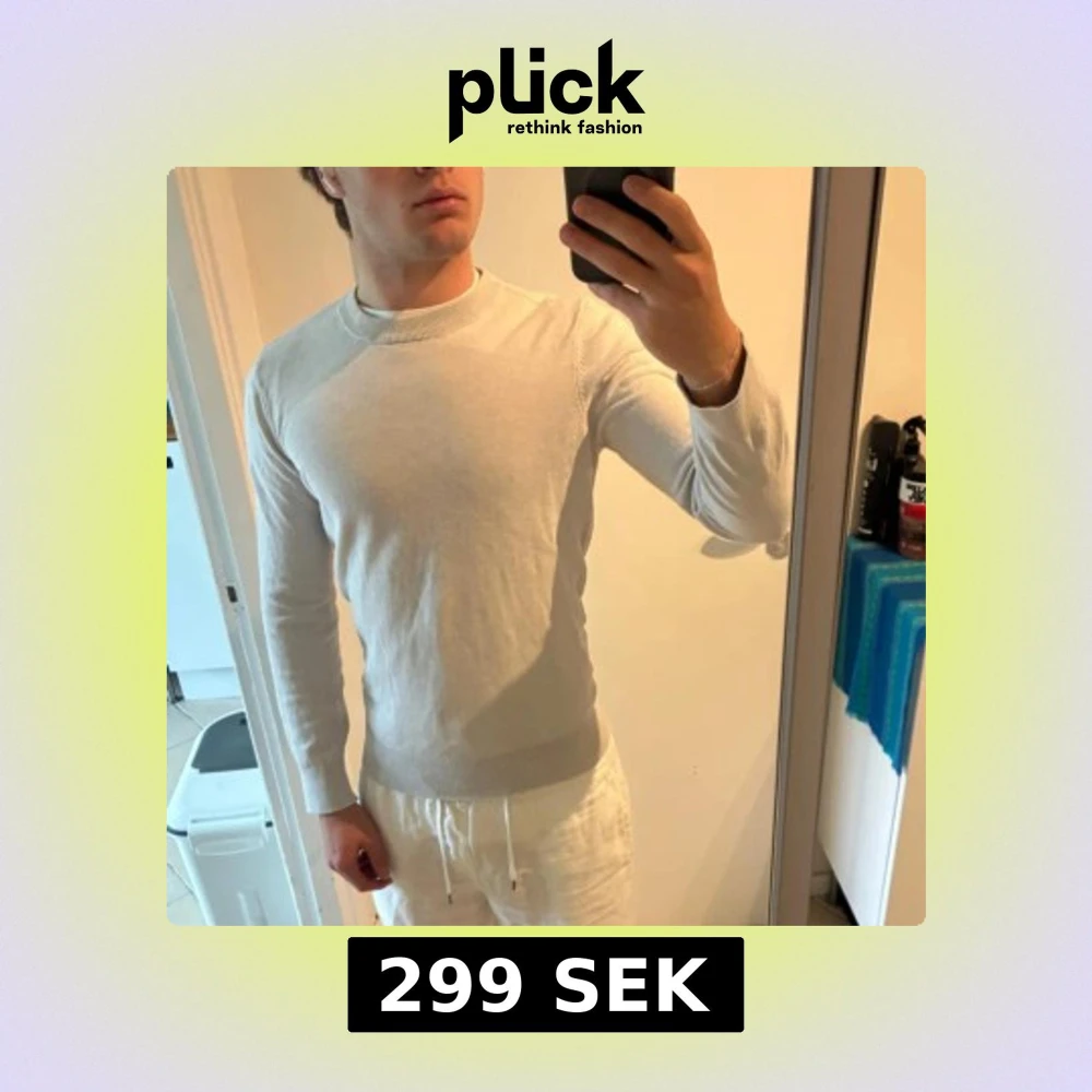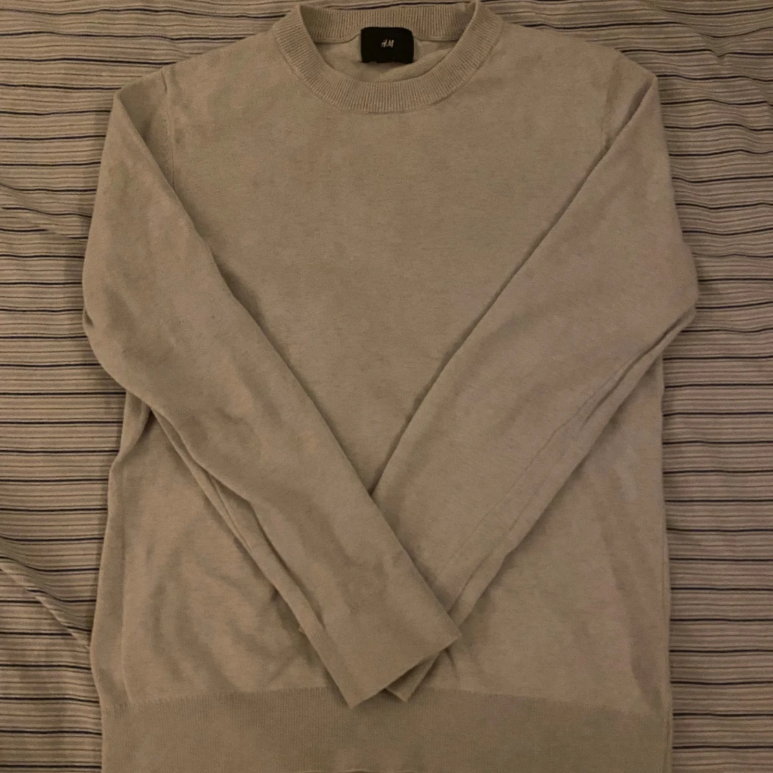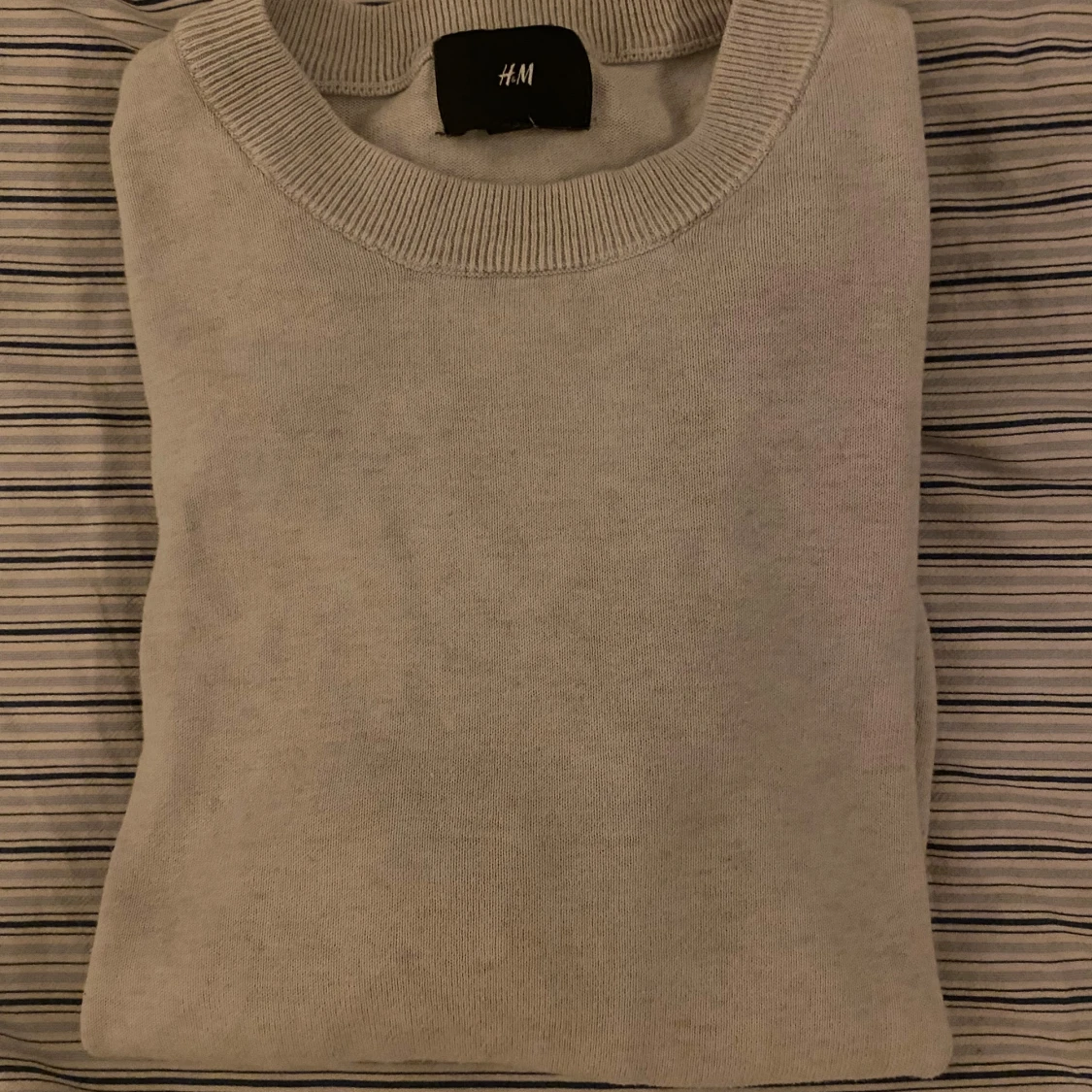 En stilren ljusgrå stickad tröja från H&M med rund halsringning och ribbade muddar. Tröjan har en normal passform och är långärmad, perfekt för lager-på-lager under höst och vår. Enkel att matcha med både jeans och chinos.