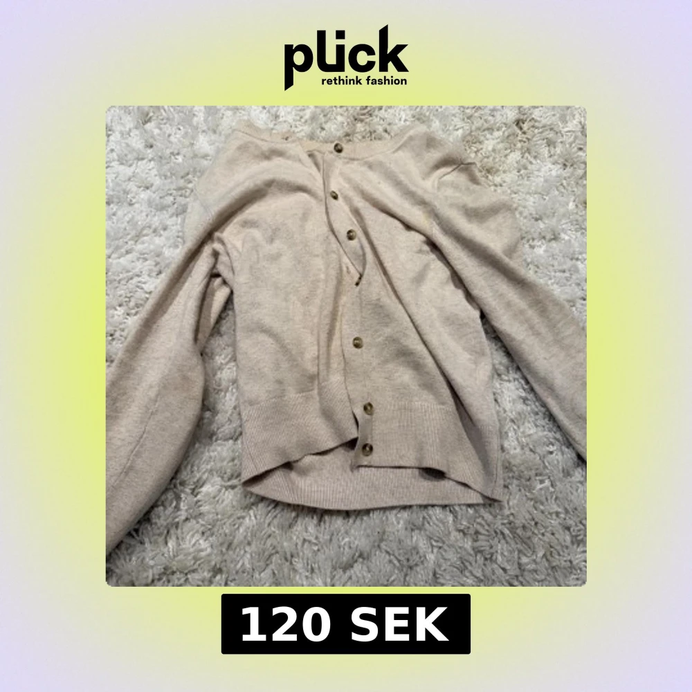 Säljer en stilren beige kofta med rund hals och snygga guldfärgade knappar framtill. Koftan har långa ärmar och ribbade muddar vid ärmslut och nederkant. Perfekt att slänga på sig när det är lite kyligt ute.
