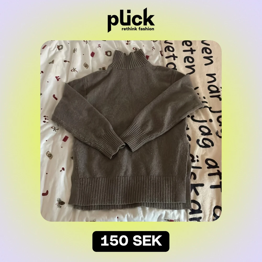 Mysig brun stickad polotröja med ribbade detaljer vid ärmslut och nederkant samt slits på båda sidorna. Perfekt för kyliga dagar och ger en stilren look. Tröjan har långa ärmar och en hög krage som håller dig varm. Passar både till vardags och mer uppklädda tillfällen.