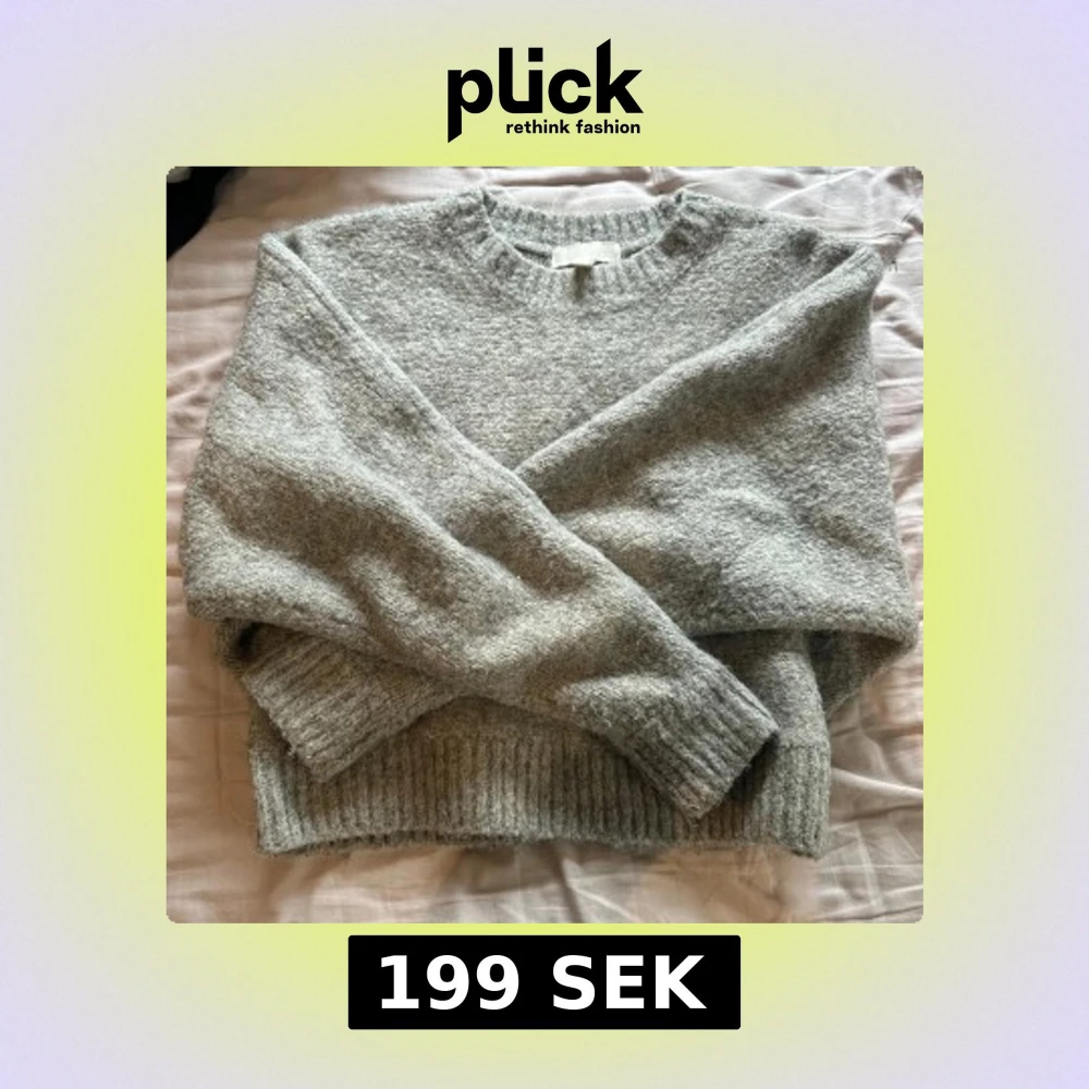 Mysig grå stickad tröja med rundad hals och ribbade muddar vid ärmslut och nederkant. Perfekt för kyliga dagar och enkel att matcha med jeans eller kjol. Tröjan har en klassisk, loose passform och långa ärmar som ger en avslappnad vibe.
