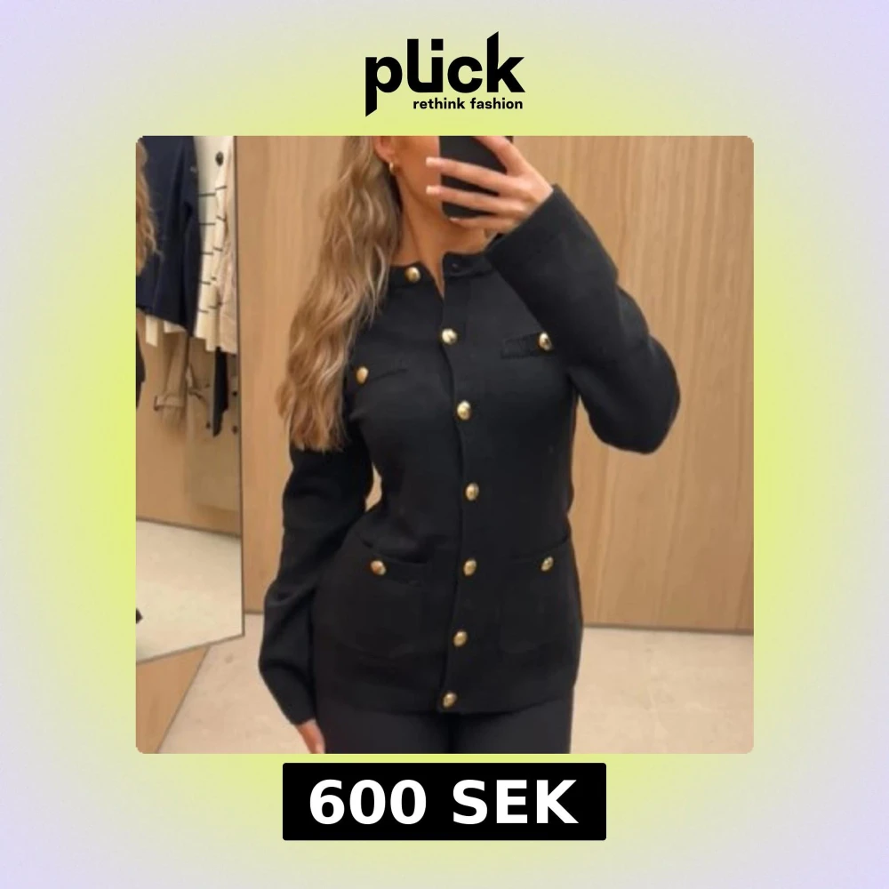 Stilren svart cardigan med markerad midja och snygga guldknappar framtill. Cardiganrn har aldrig kommit till användning!