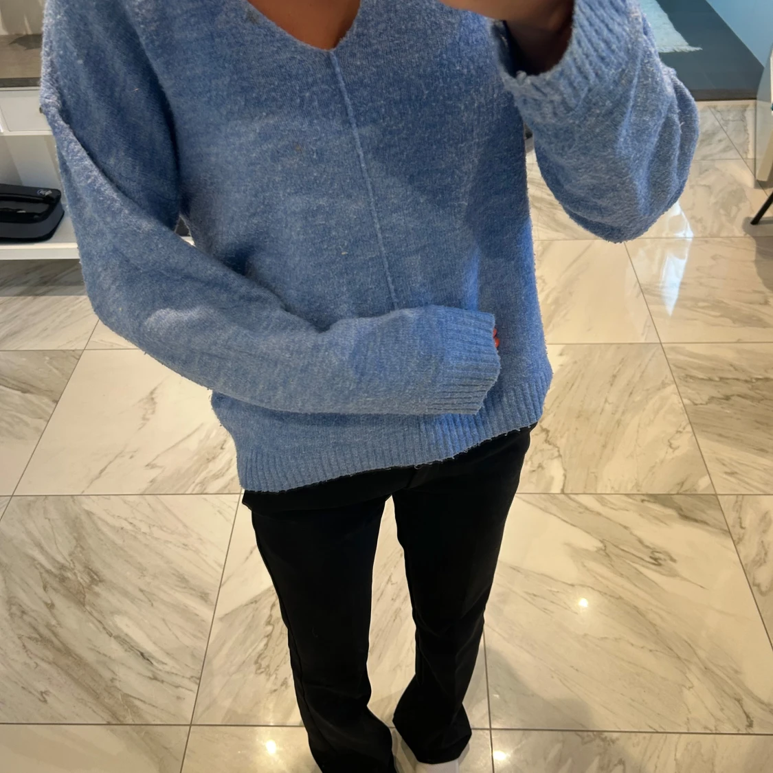 Mysig blå stickad tröja med v-ringad hals. Suuuper skön!!