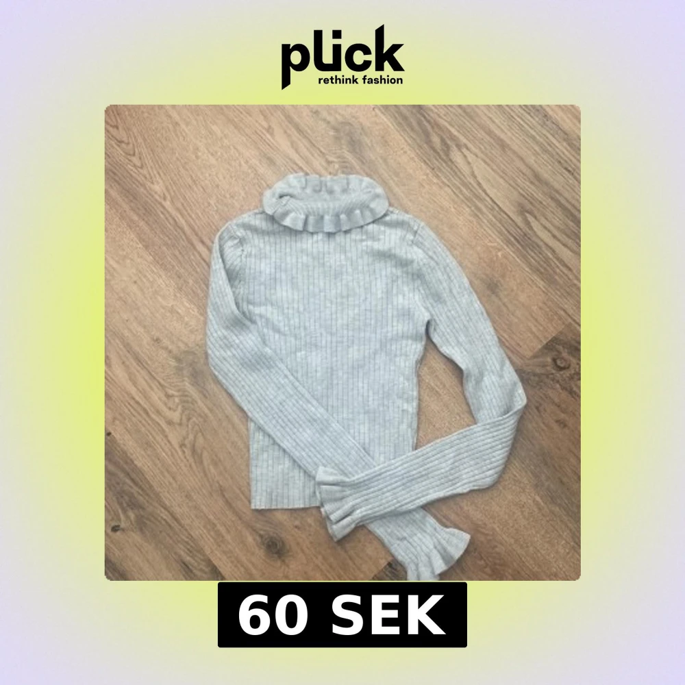 Superfin ljusgrå polotröja med ribbad struktur och volangdetaljer vid krage och ärmslut. Tröjan har långärmade smala ärmar och en hög, rynkad polokrage som ger en extra stylish touch. Perfekt för dig som gillar en clean men ändå söt look.