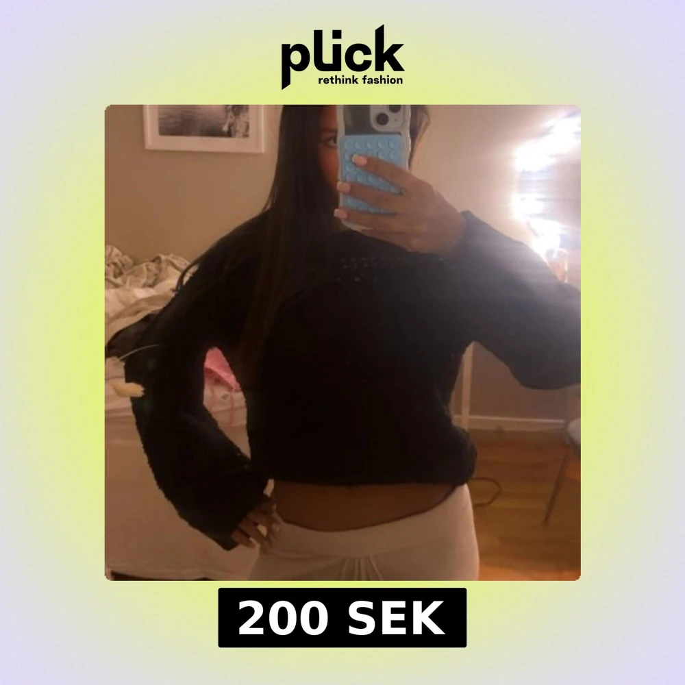 Mysig svart stickad tröja med croppad passform och lång ärm. Tröjan har ett hålmönster som ger en cool och trendig look. Perfekt för lager-på-lager under höst och vinter. Snygg till både jeans och kjol.