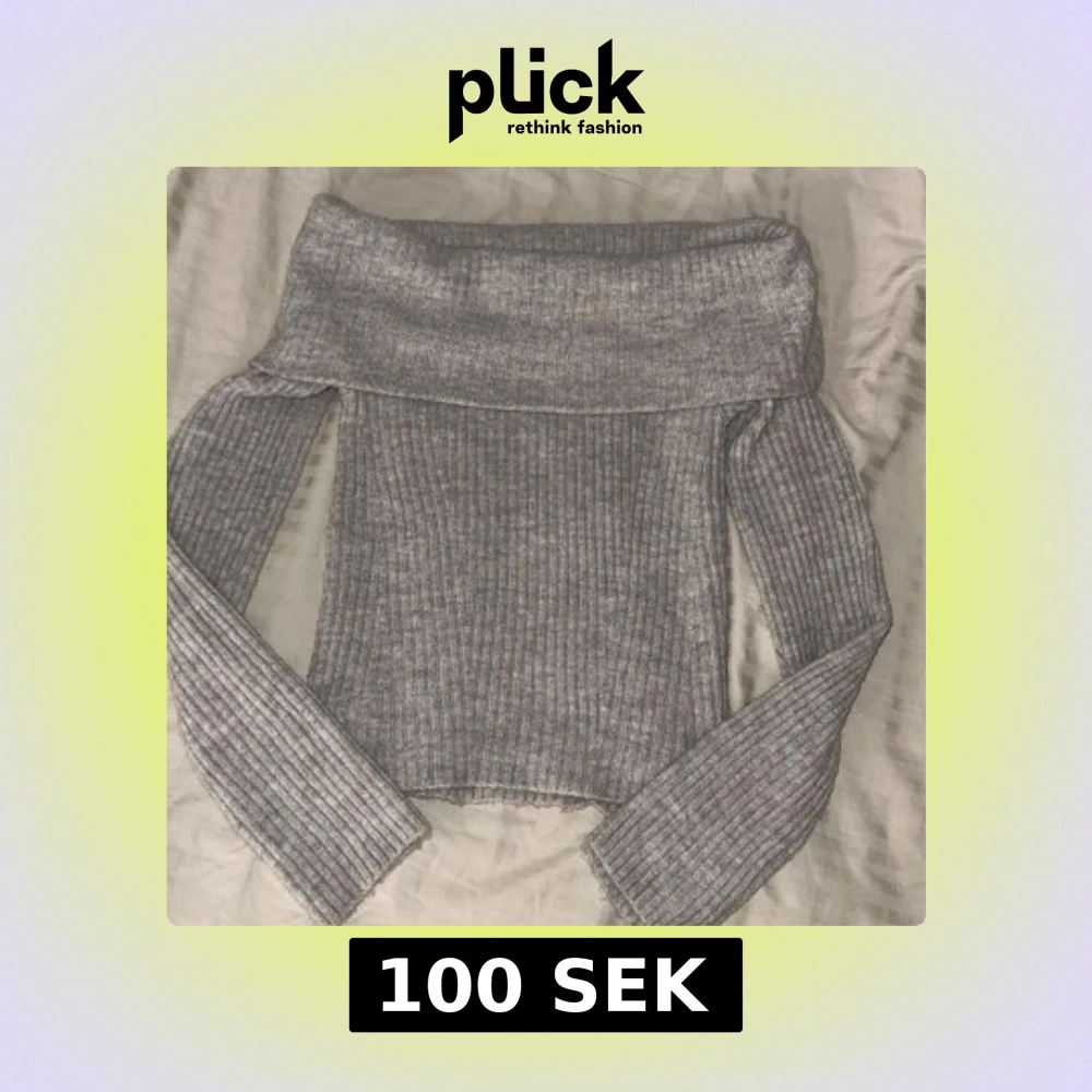 Säljer en beige stickad offshoulder tröja från H&M i storlek Xs