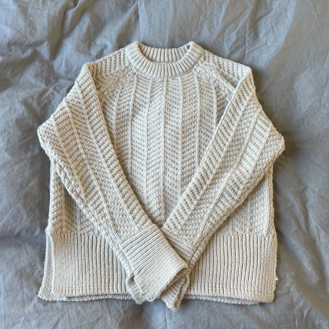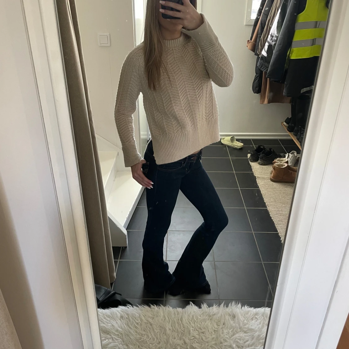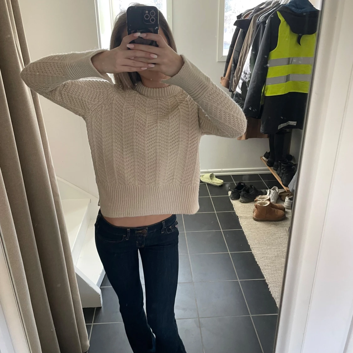 Fin stickad tröja från H&M. Om man tittar noga på bilden kan man se att längst ut på ärmarna är har den en slitts, samma på båda sidorna av tröjan (det ska vara så)