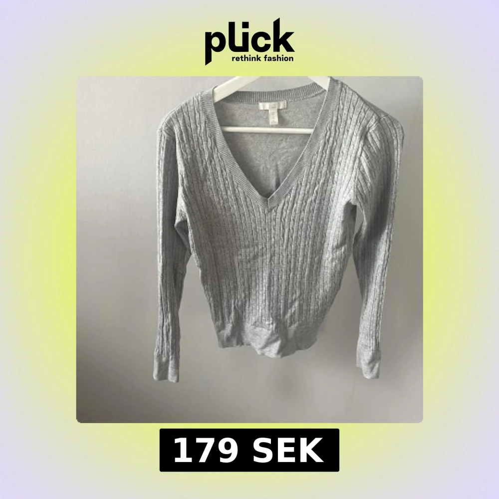 Snygg grå kabelstickad tröja från H&M i storlek XS. Tröjan har v-ringning, ribbade muddar och lång ärm. Perfekt för lager-på-lager och enkel att matcha med jeans eller kjol. Mjuk och skön känsla, passar dig som gillar klassisk stil❤️