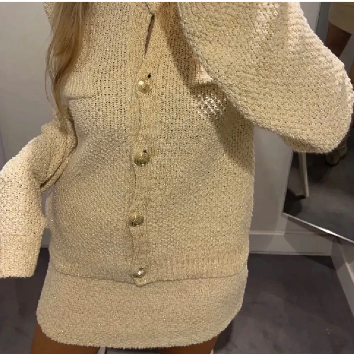 Säljer denna super fina beige glittriga koftan. Lånad bild!
