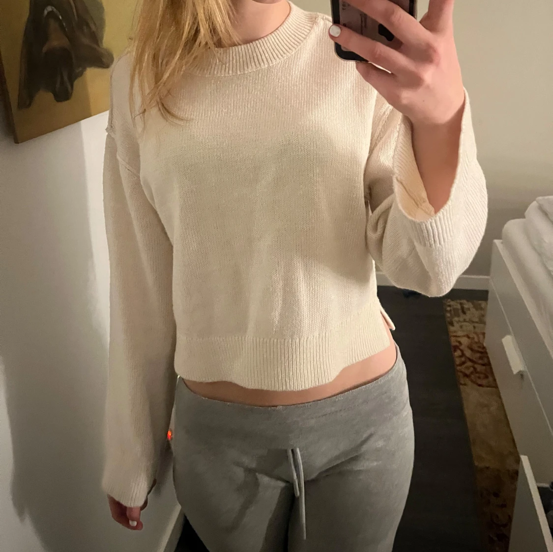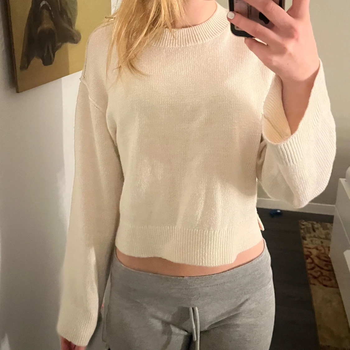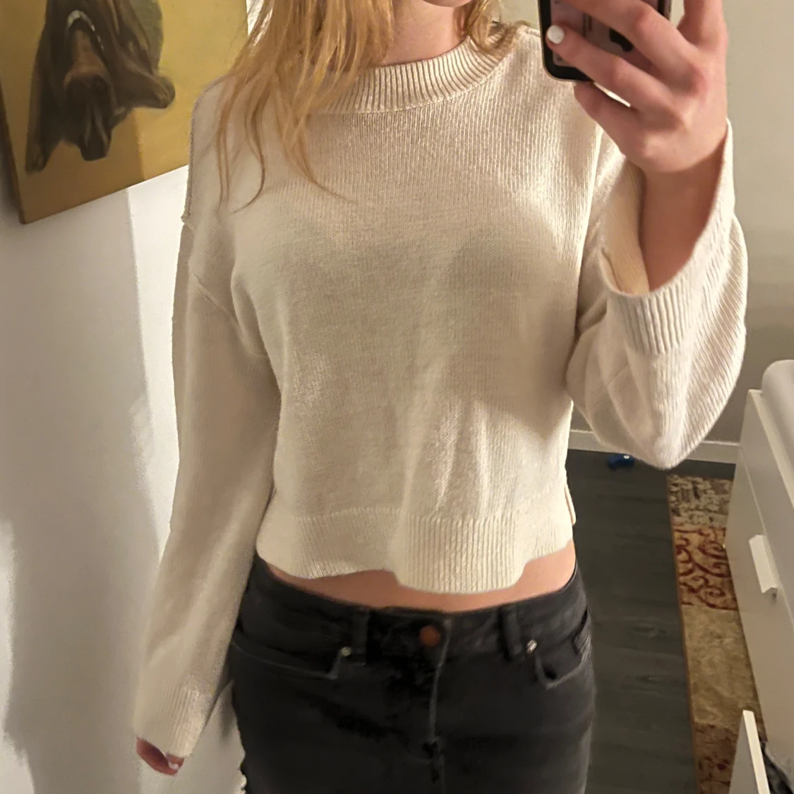Säljer denna stickade vit/begie tröja från H&M storlek XS! Inga defekter, pris kan diskuteras🩷