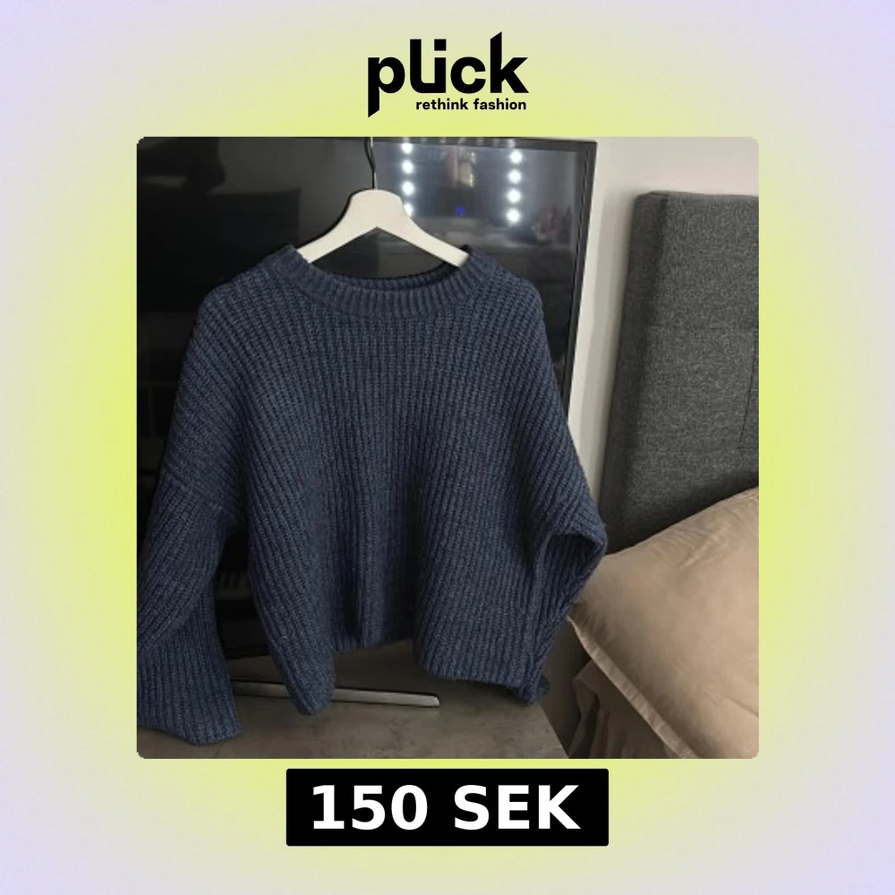 Mysig blå stickad tröja med grov ribbad struktur och avslappnad, loose passform. Tröjan har rund halsringning och långa ärmar, perfekt för kyliga dagar. Enkel att styla med jeans eller kjol för en chill look.