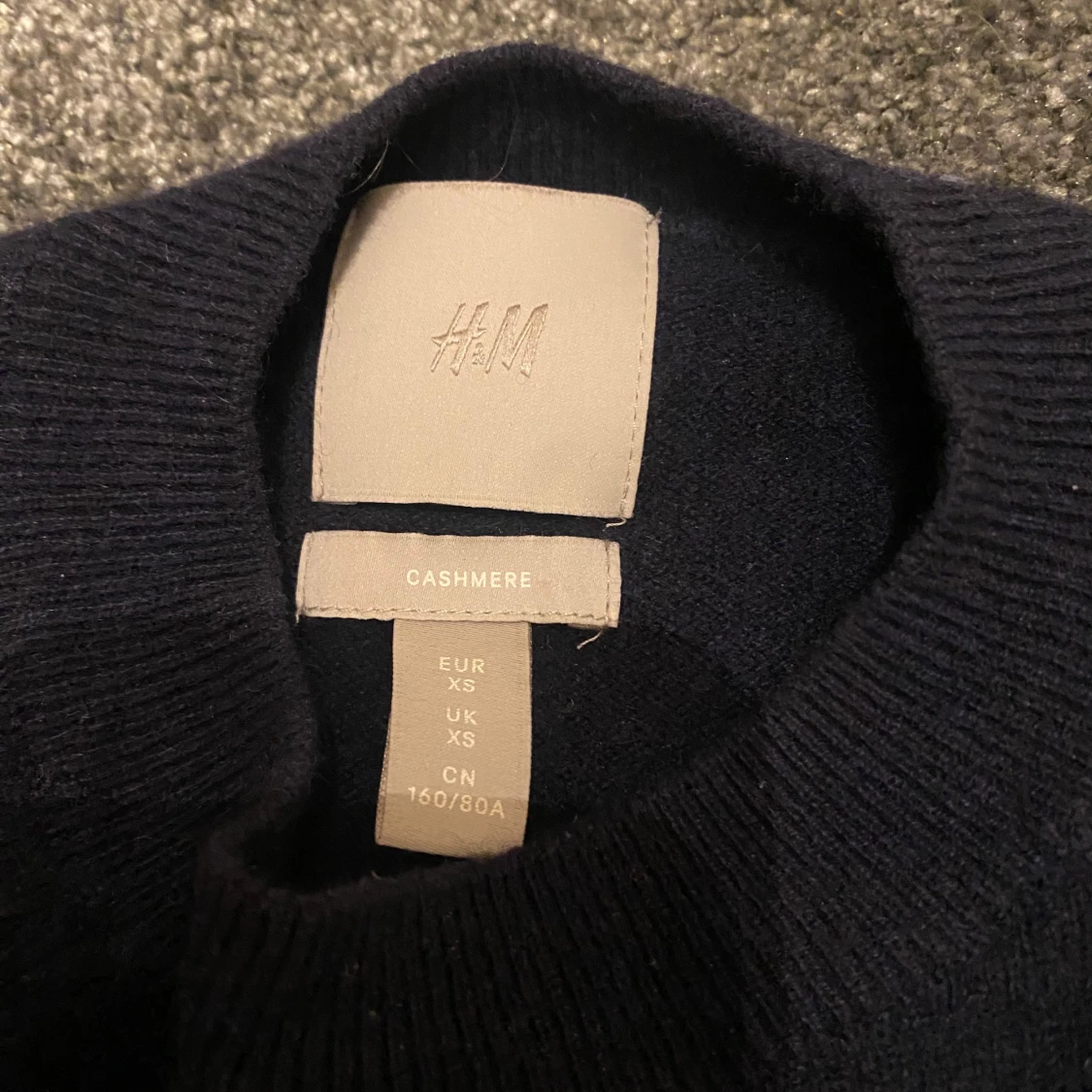 Snygg mörkblå tröja i mjuk kashmir från H&M. Modellen har halvlånga ärmar och en klassisk rund halsringning. Perfekt för dig som gillar stilrena och bekväma plagg med lyxig känsla.