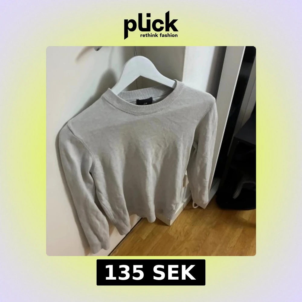 En stilren ljusgrå stickad tröja från H&M med rund halsringning och ribbade muddar. Perfekt för lager-på-lager och enkel att matcha med jeans eller kjol. Långärmad och i mjukt material som känns skönt mot huden.