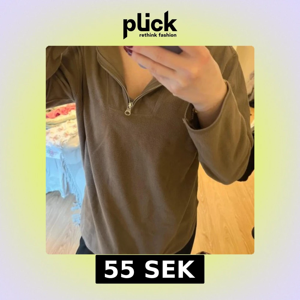 Säljer en brun fleece tröja med dragkedja framtill. Tröjan har långa ärmar och en bekväm passform.🤎