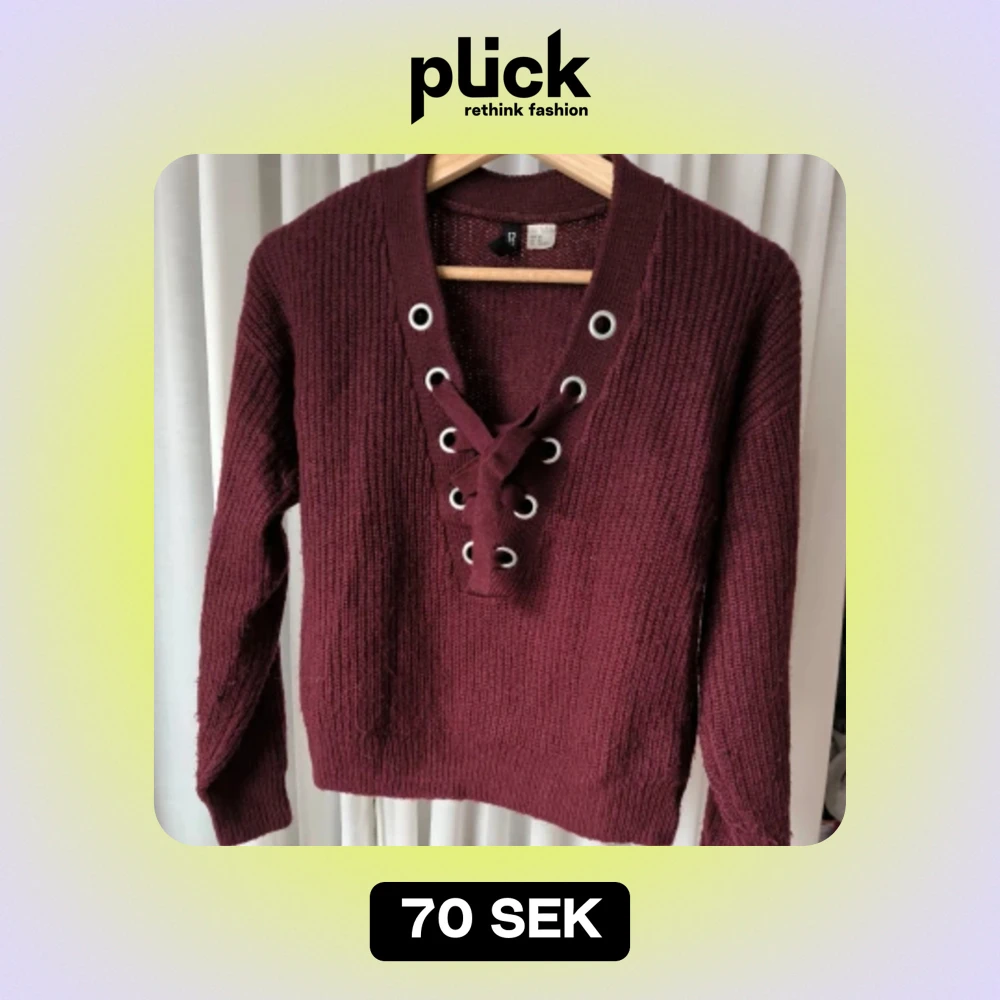Stickad tröja med snörning fram, går också att vända o ha snörningen bak i ryggen. Använd men bra skick. Storlek xs men passar s