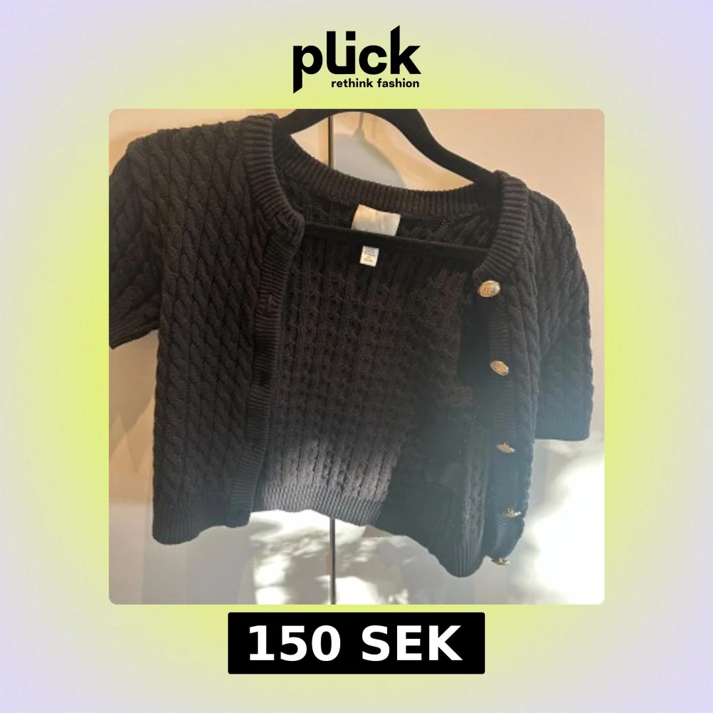 Säljer en svart stickad kofta med korta ärmar och snygga guldknappar från HM