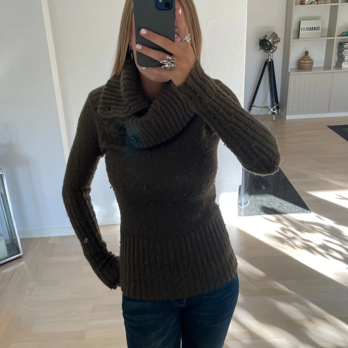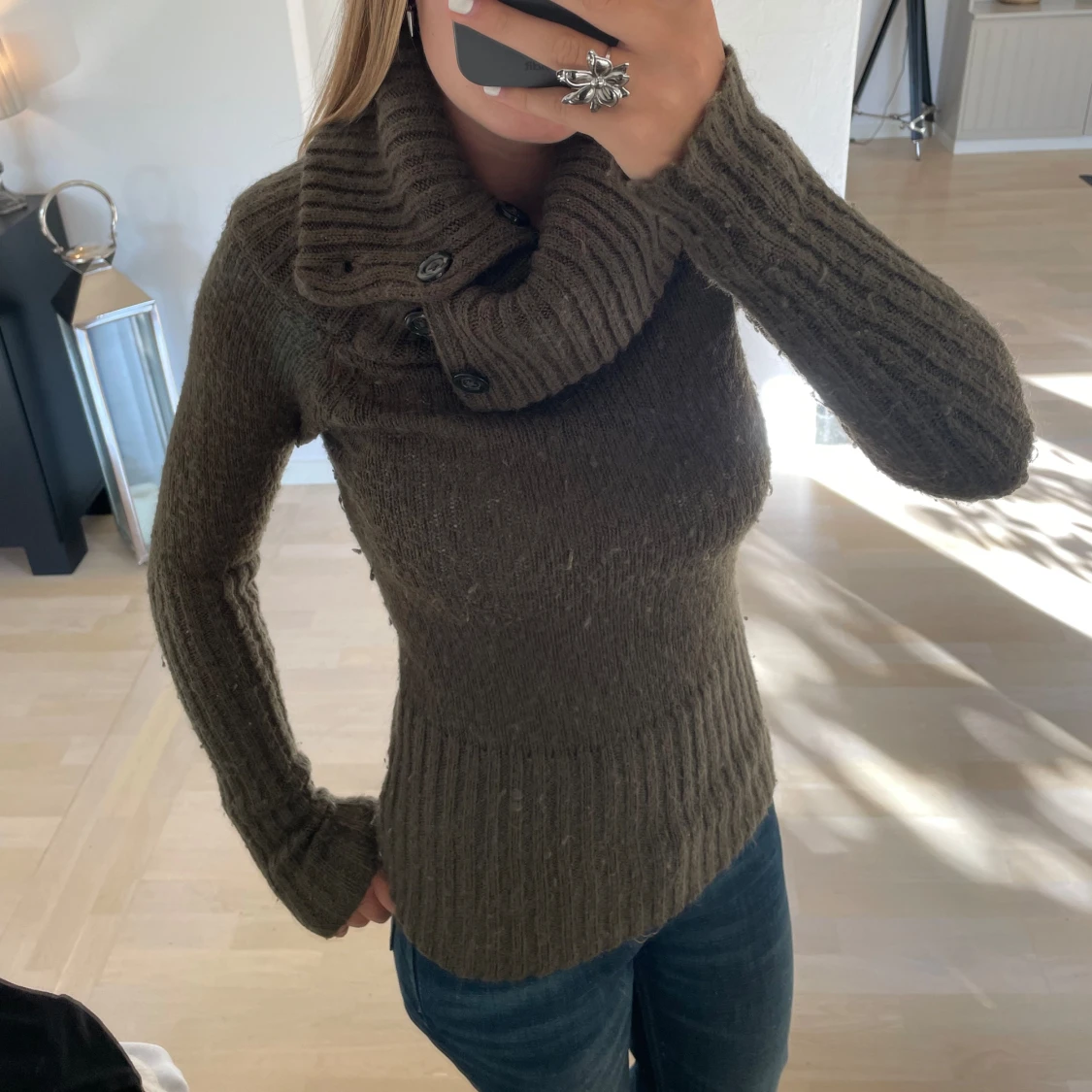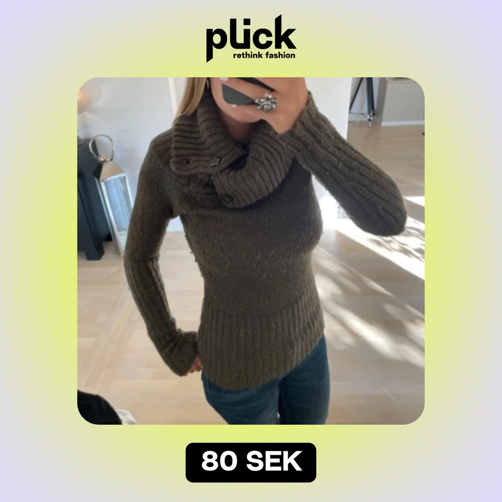 Snygg grön stickad tröja med cool krage. Skönt material och i storlek 36, köparen står för frakten