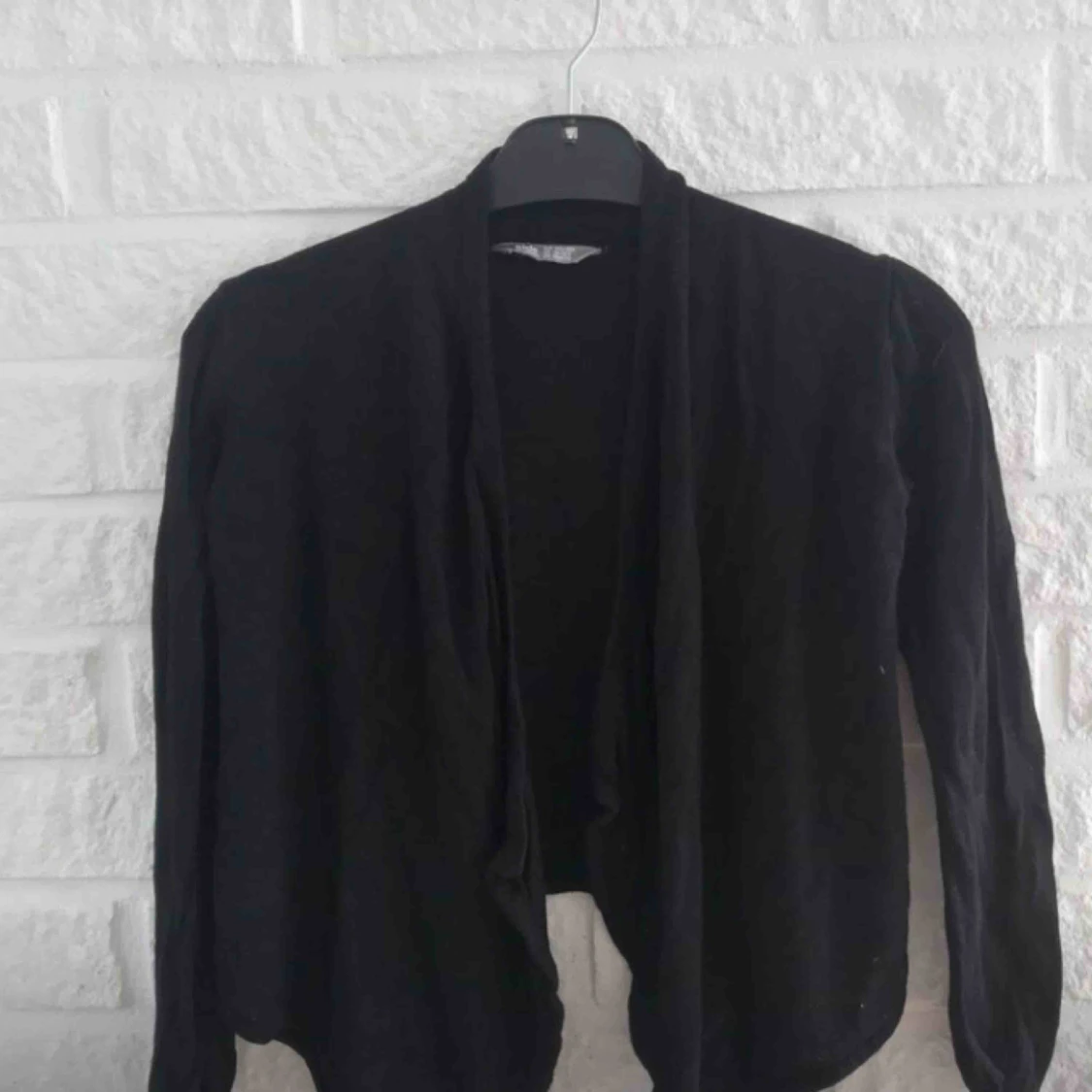 Svart kofta, snygg till ett linne, vet inte vart den är ifrån så skrev bara hm, man kan också knyta den så de blir en tröja, köparen står för frakt
