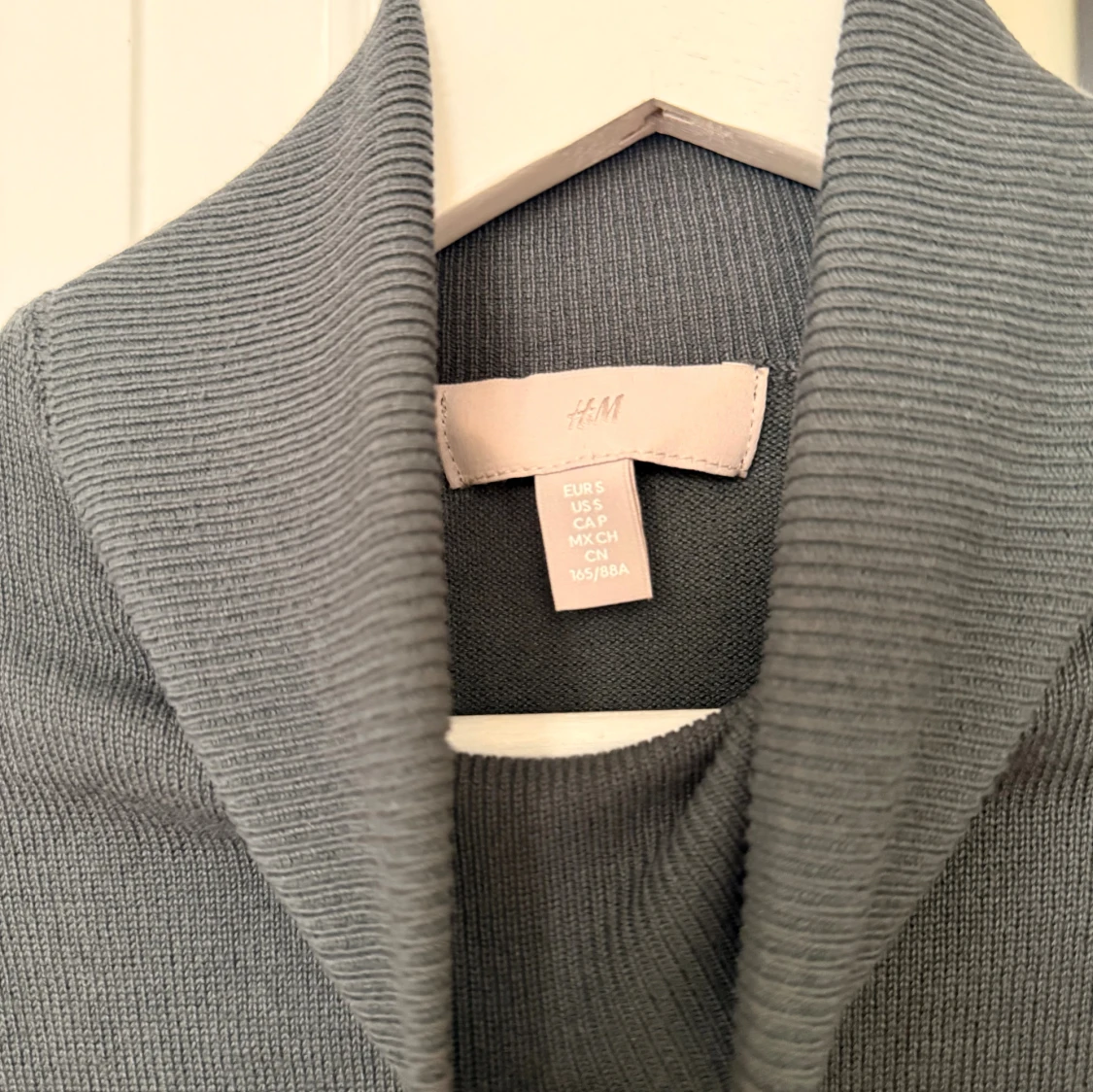 Mörkgrå polotröja från H&M i mjuk och tunn stickad bomullsmix. Klassisk modell med lång ärm och ribbad krage som sitter snyggt runt halsen. Perfekt att styla med jeans eller kjol för en clean look.