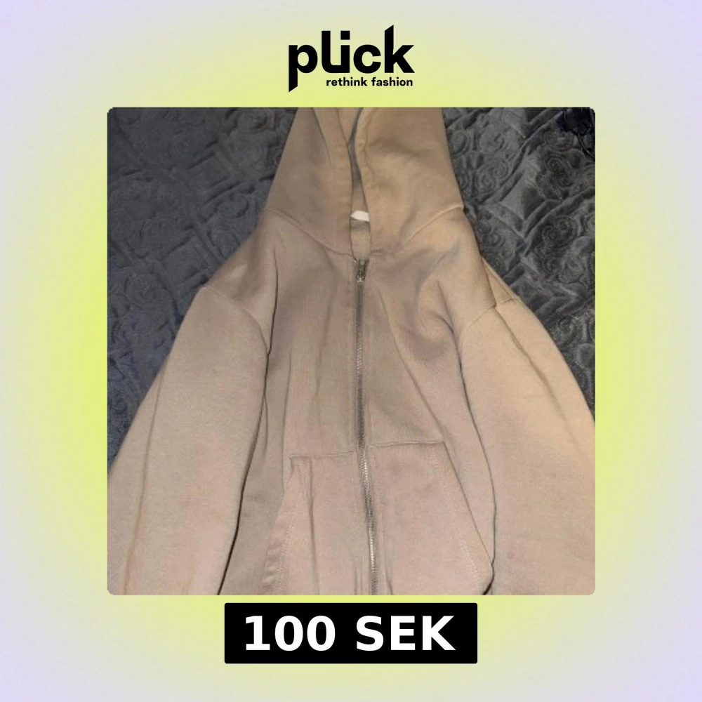 Säljer en beige hoodie med dragkedja framtill och huva. Tröjan har två fickor på magen och är tillverkad i ett mjukt material, perfekt för en avslappnad stil. Använd endast 1 gång pga fel storlek, som nytt skick!!