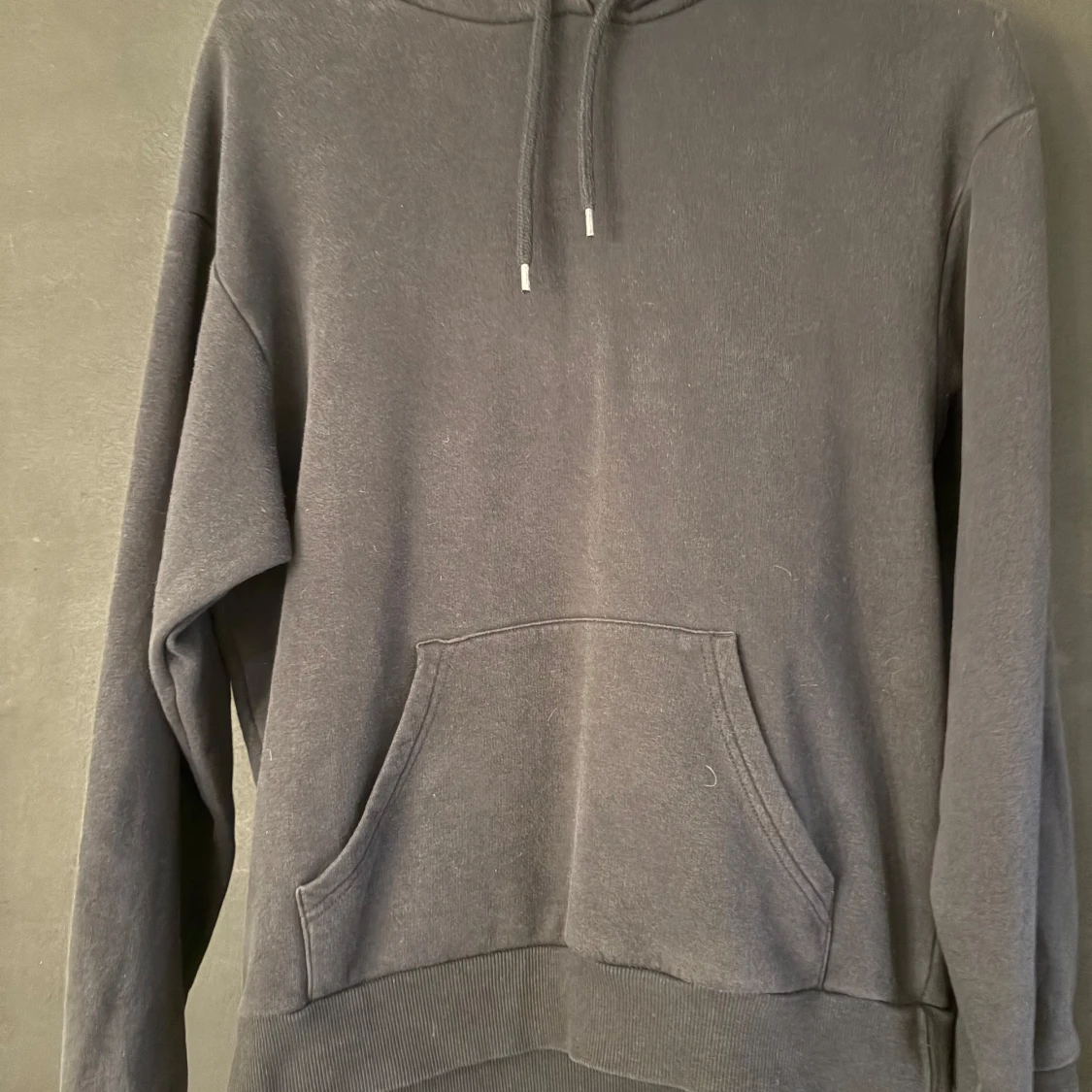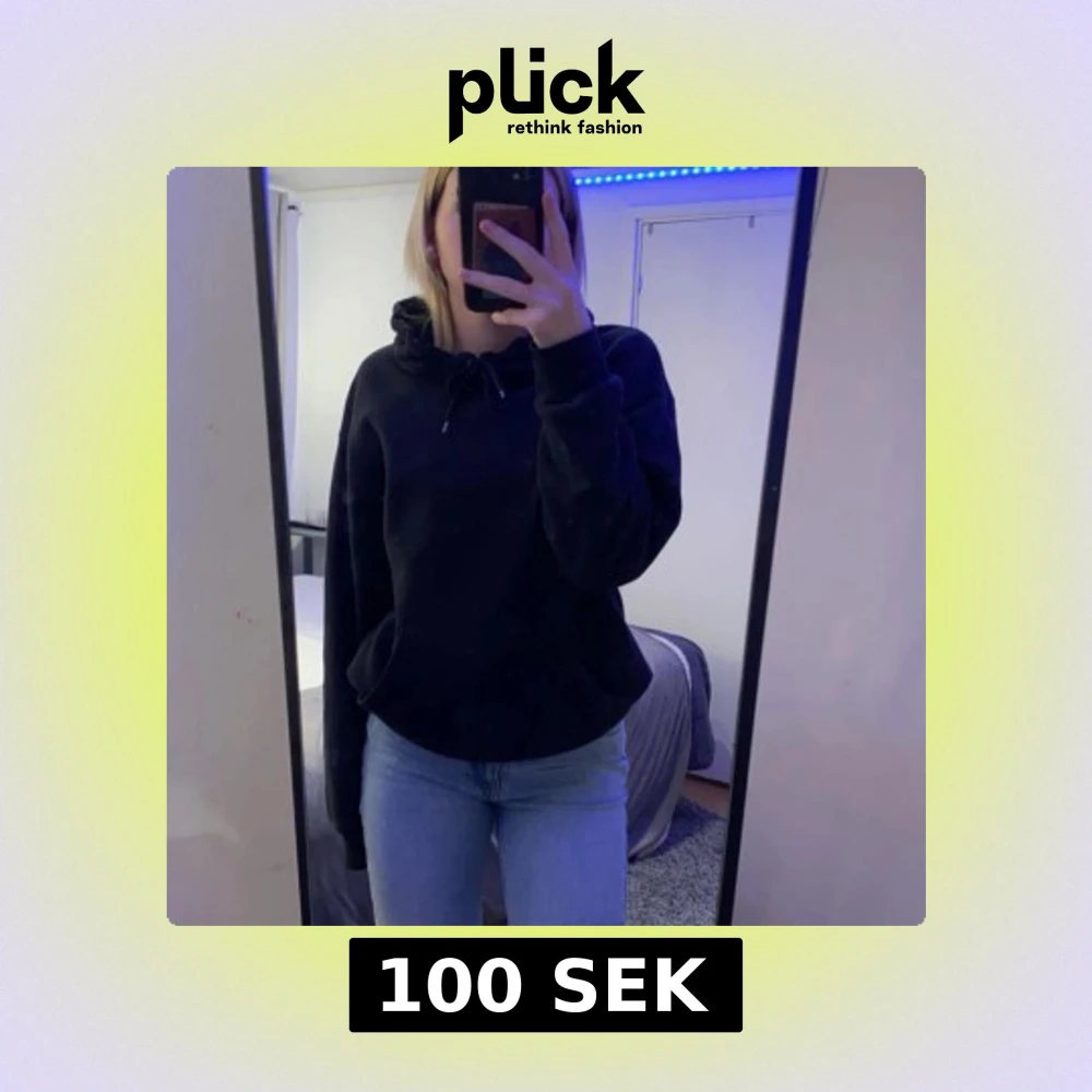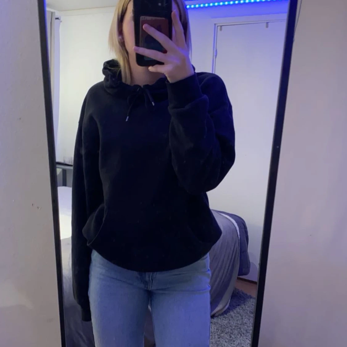 Säljer en klassisk svart hoodie med känguruficka och justerbar dragsko i huvan. Perfekt för en avslappnad stil och passar till det mesta. Skön och enkel att bära.