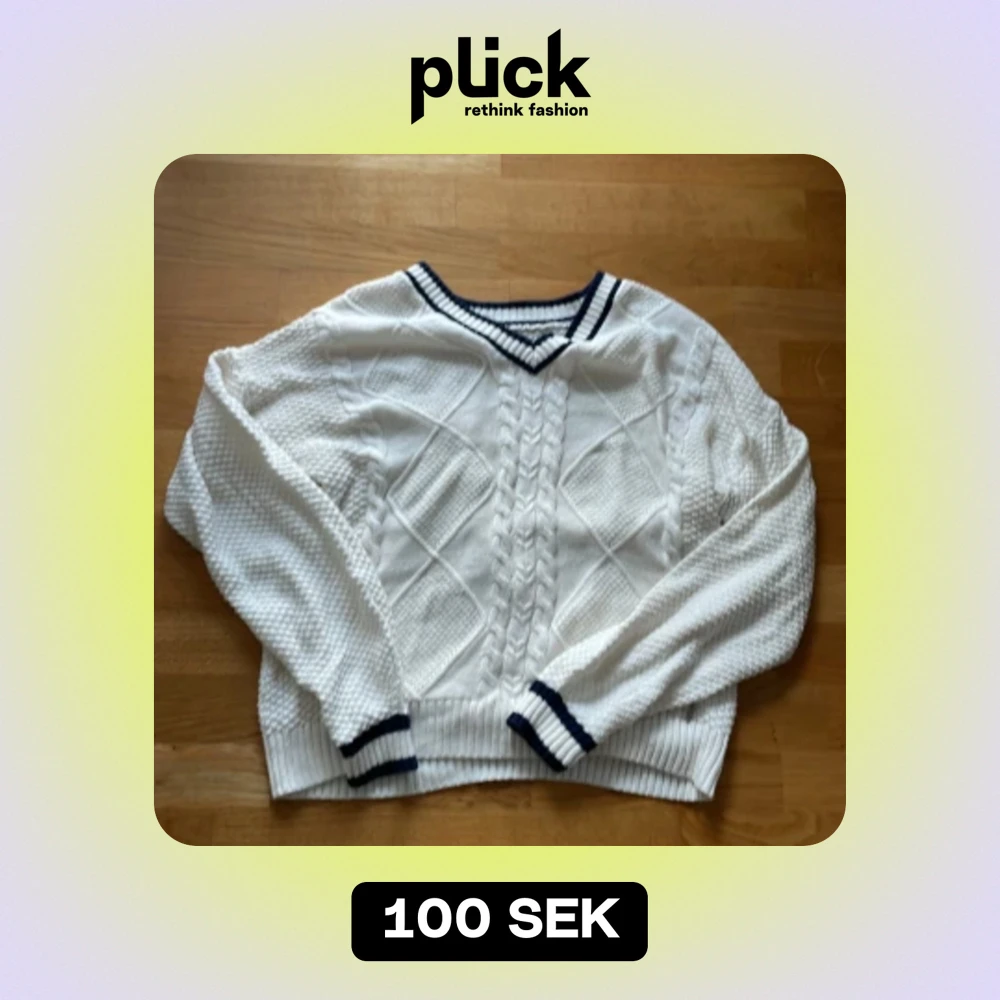 Jättemysig vit stickad tröja från hollister. V-neck och ganska tunn. Står xs men skulle säga att den passar mer som s. Skriv om du har frågor eller för fler bilder🩷