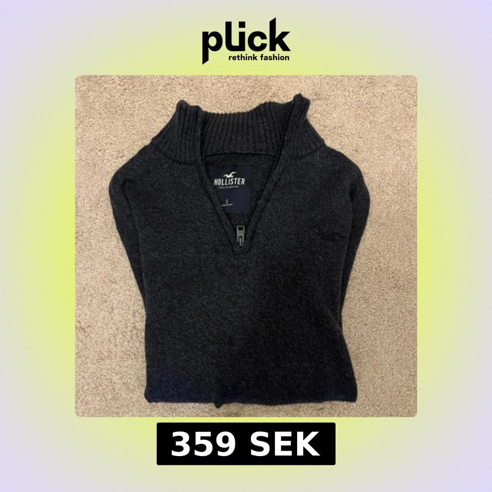 Snygg mörkgrå stickad tröja från Hollister med ribbad hög krage och half zip-dragkedja framtill. Tröjan har långärmad passform och diskret Hollister-logga på bröstet. Perfekt för dig som gillar klassisk och enkel stil. Skick 9,5/10
