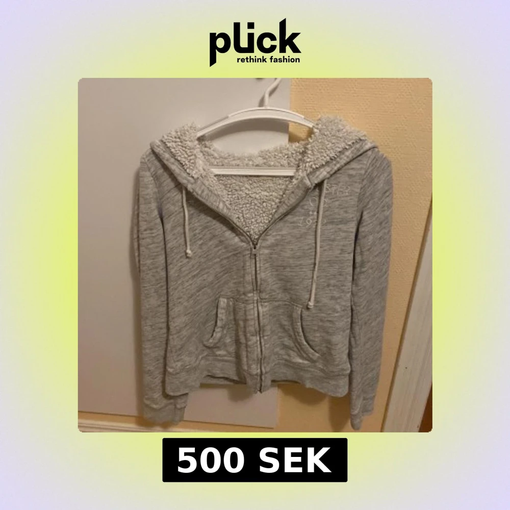 Grå hoodie med teddyfoder från Hollister