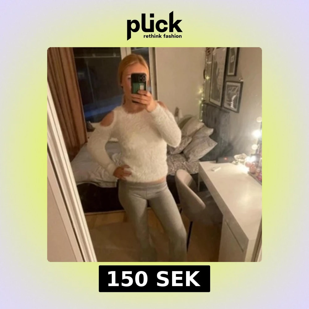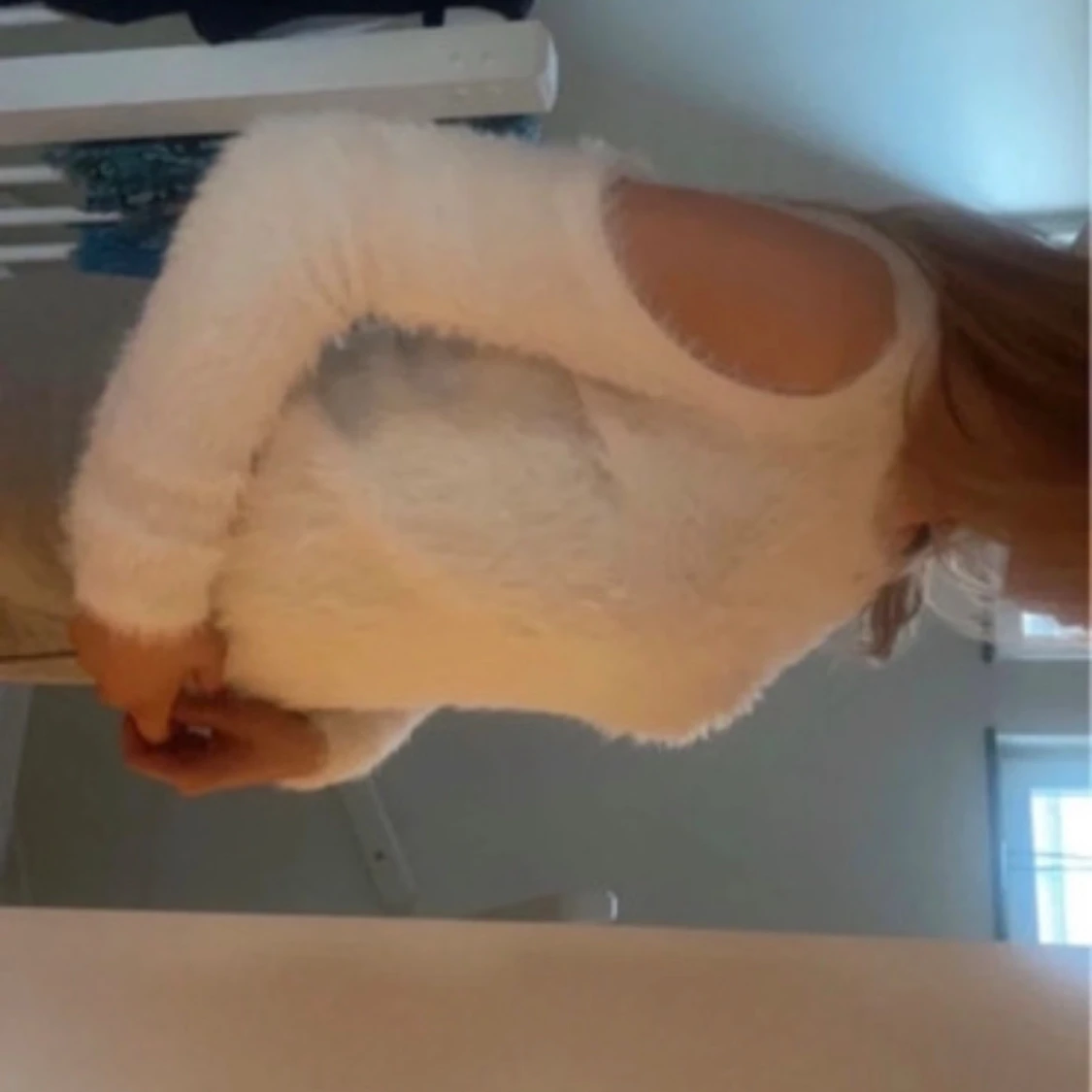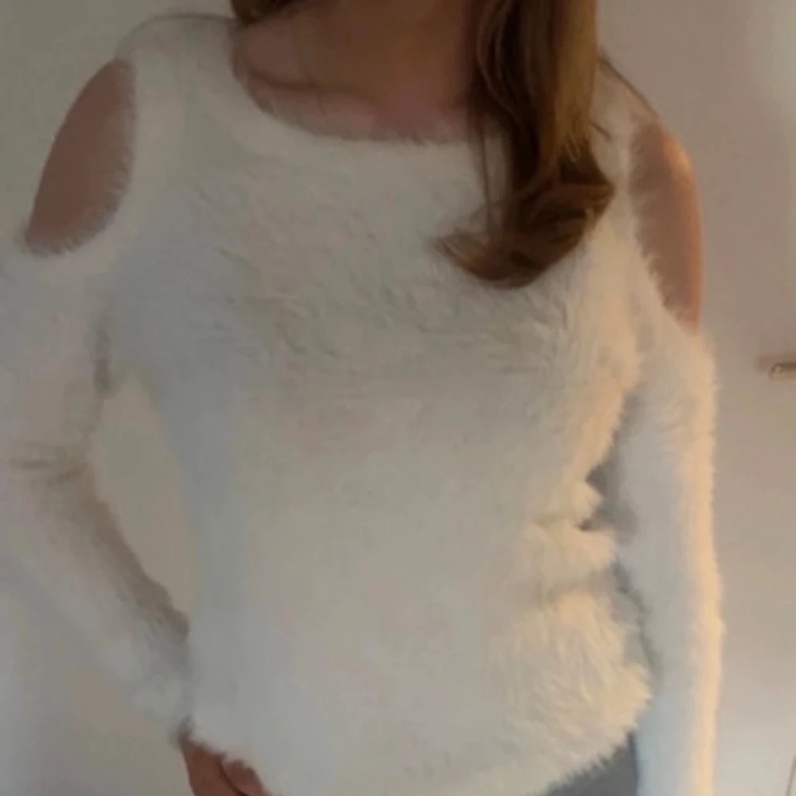 Vit fluffig tröja utan axlar