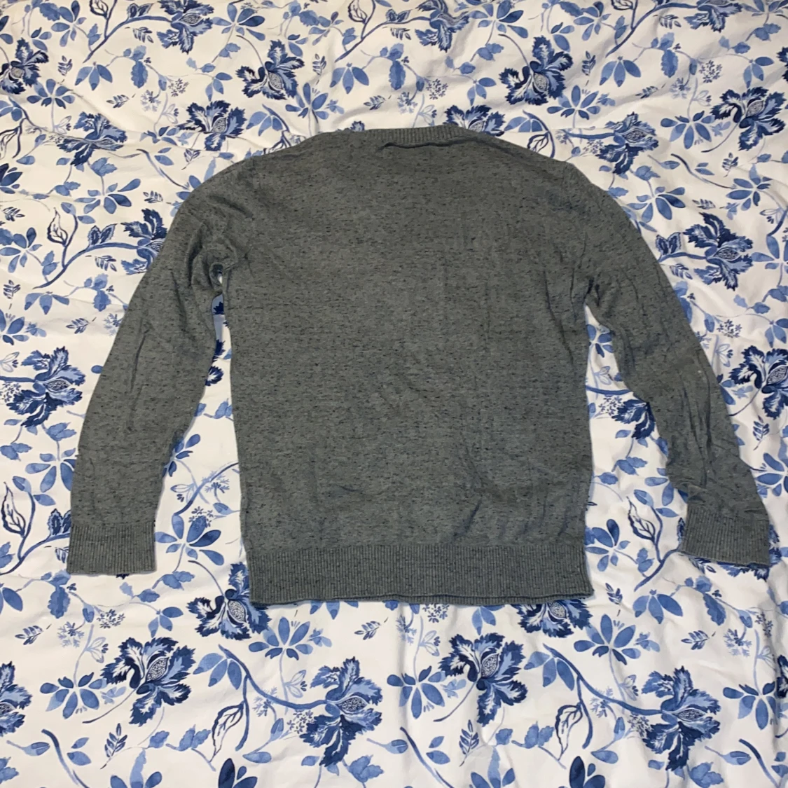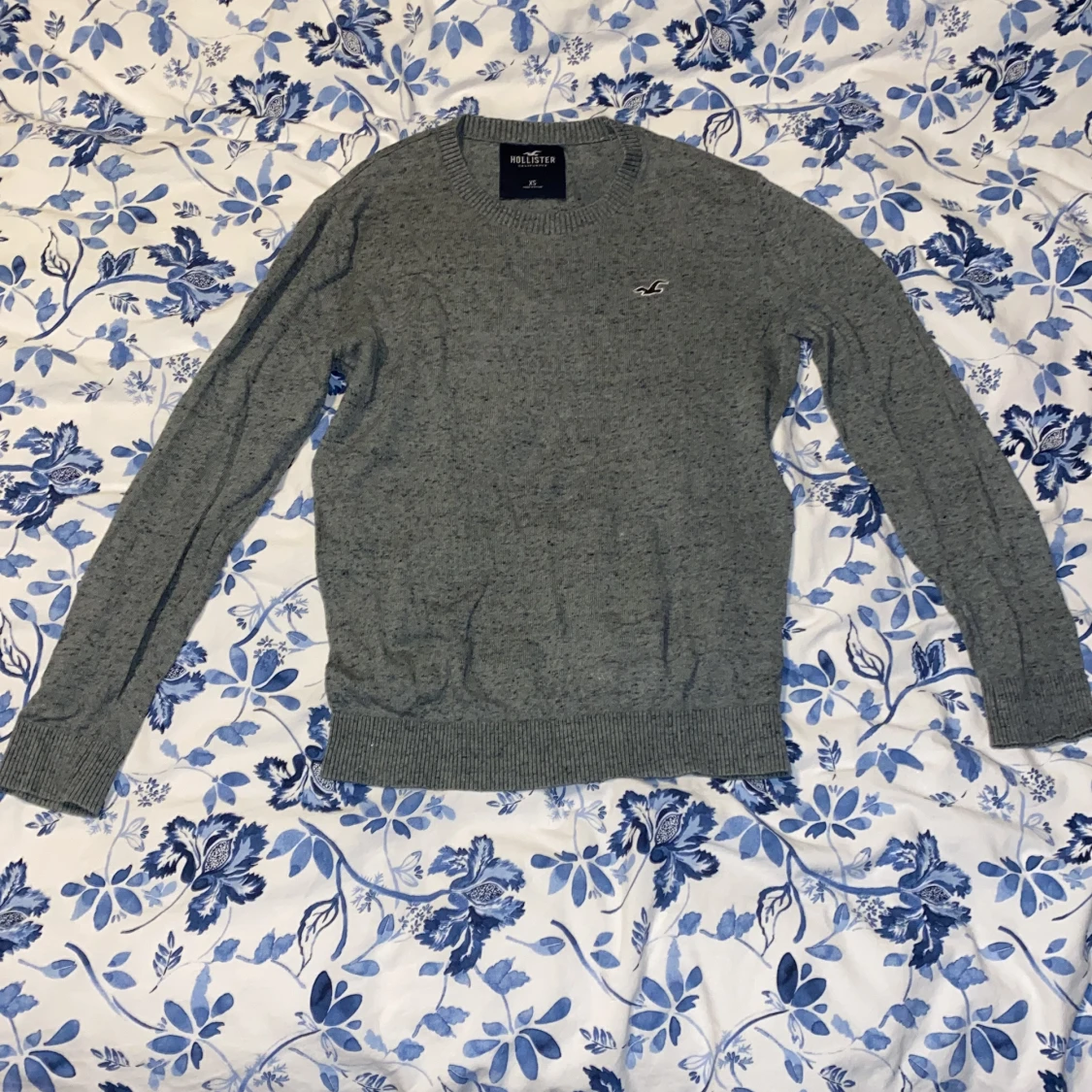 Säljer en stilren grå tröja från Hollister i storlek XS. Tröjan har en diskret logga på bröstet och är tillverkad i ett mjukt material med ribbade muddar vid ärmslut och nederkant. Perfekt för en avslappnad look. Obs! Några fläckar