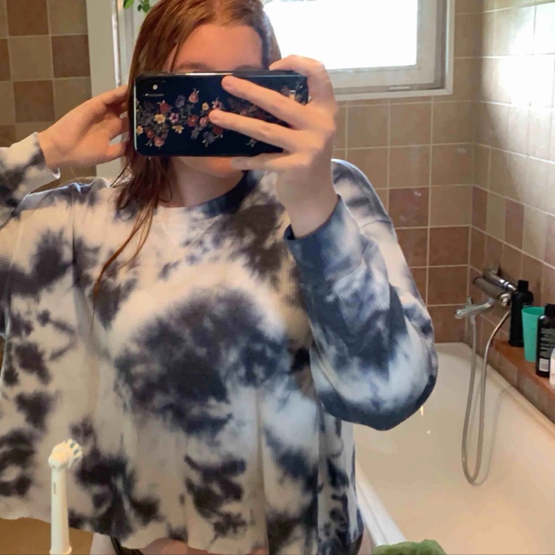 En långärmad croppad snygg och mysig tröja från hollister. Använd några gånger och väldigt fint skick, storlek L.