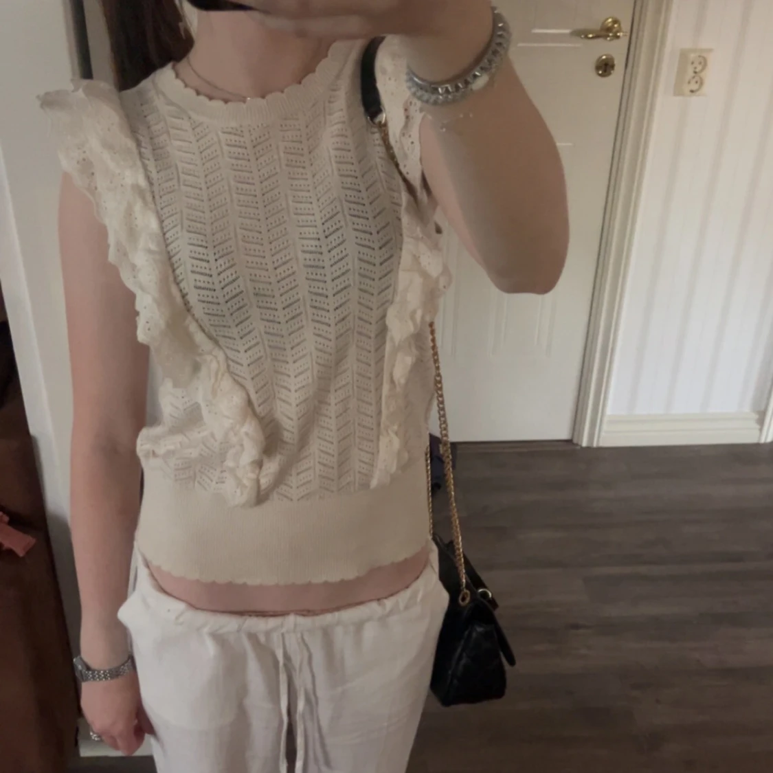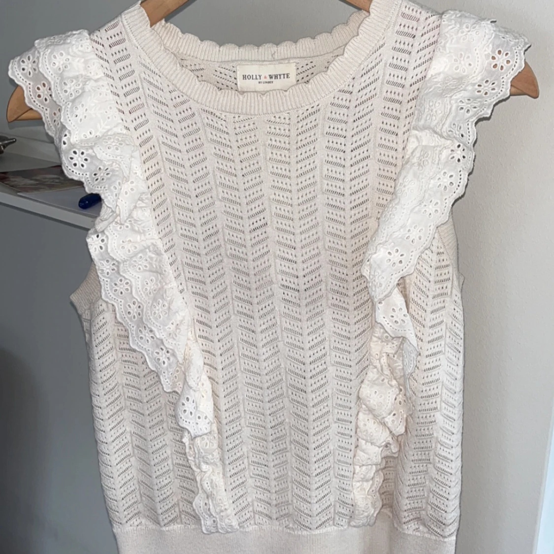 Säljer en söt vit ärmlös topp från Holly & White. Toppen har inga defekter och har användes mycket men försiktigt. Säljer på grund av för lite användning.