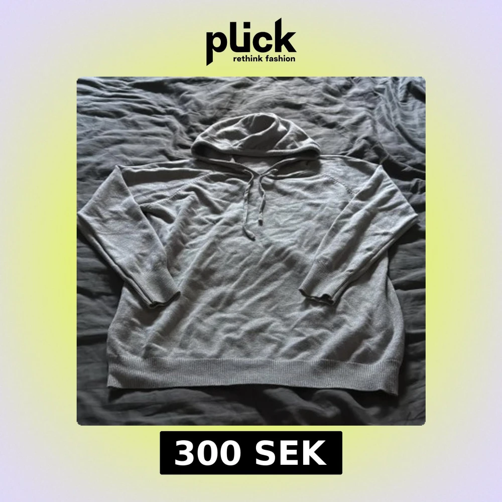 Säljer en stilren ljusgrå hoodie med huva och snörning framtill. Tröjan har långa ärmar och ribbade muddar vid ärmslut och nederkant. Perfekt för chill dagar och enkel att matcha med jeans eller joggers.
