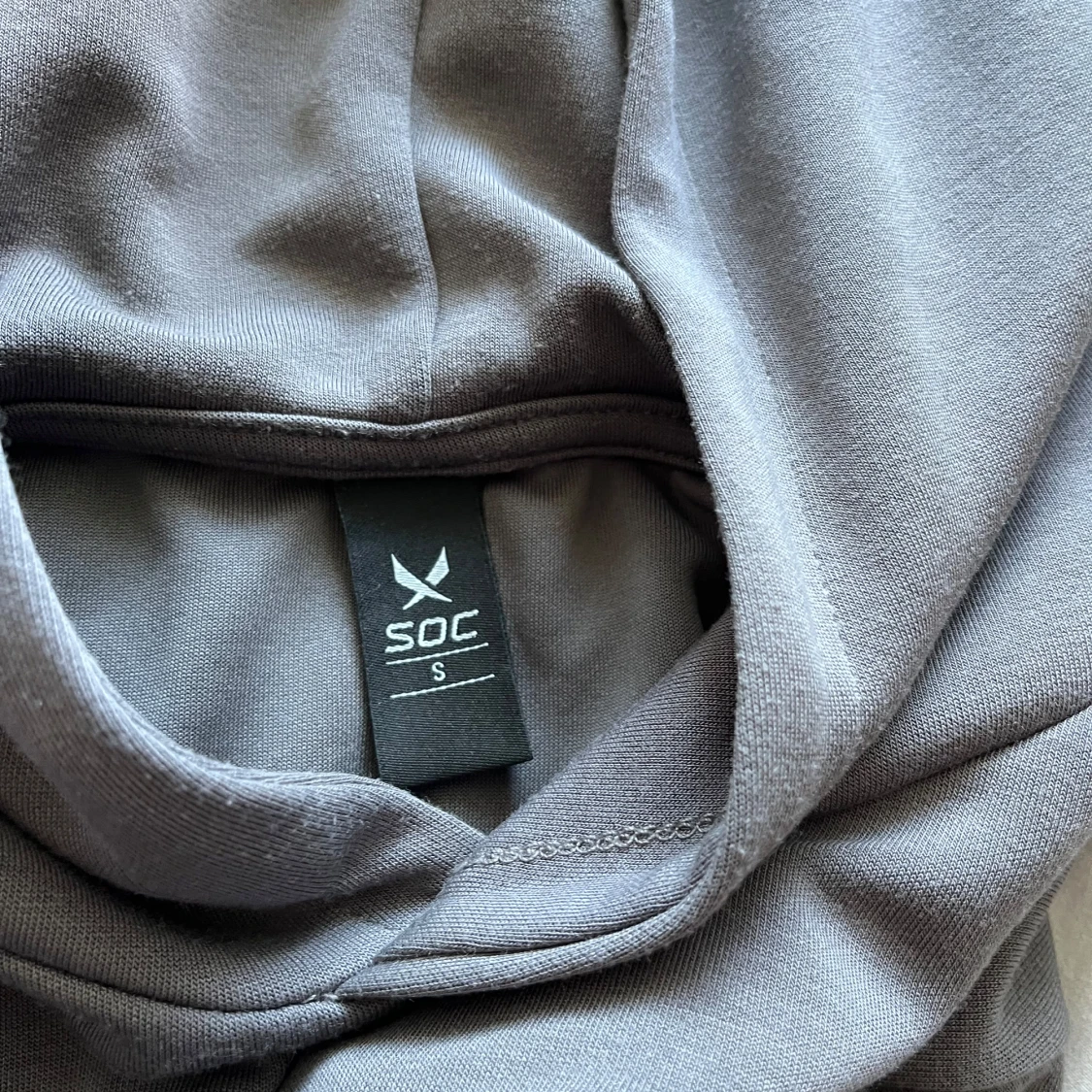 Säljer en enkel och stilren grå hoodie från SOC i storlek S. Tröjan har lång ärm, huva och är tillverkad i mjukt material. Perfekt för en avslappnad look.