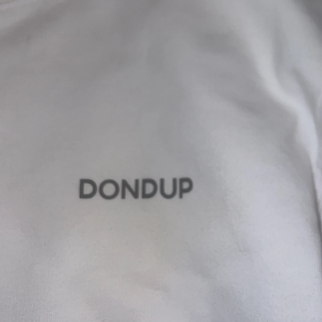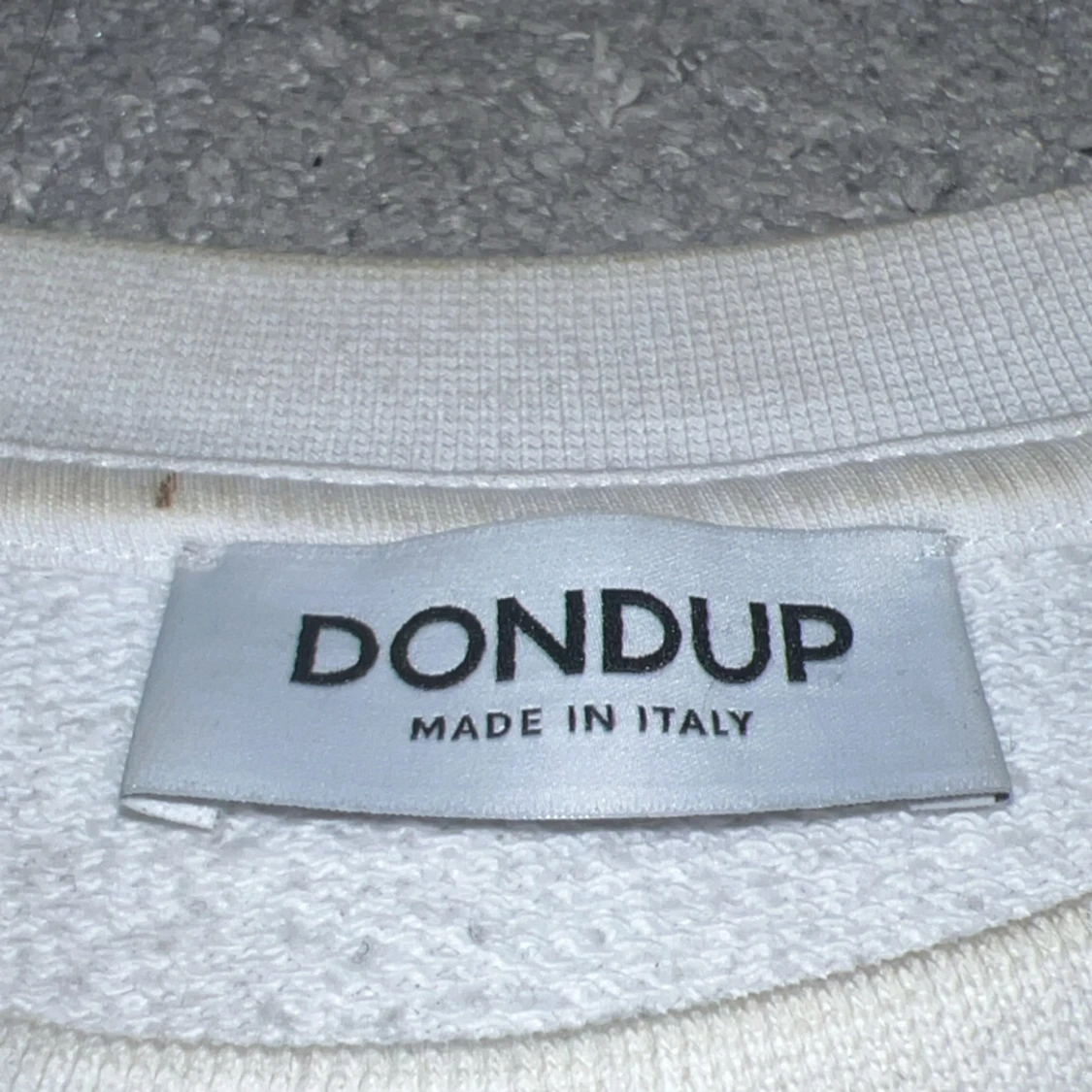 Säljer en clean vit sweatshirt från Dondup med diskret logga på bröstet. Tröjan har rund hals, långa ärmar och är tillverkad i mjuk bomull. Perfekt för dig som gillar minimalistisk stil och italiensk design. Strl M men sitter mer som en L