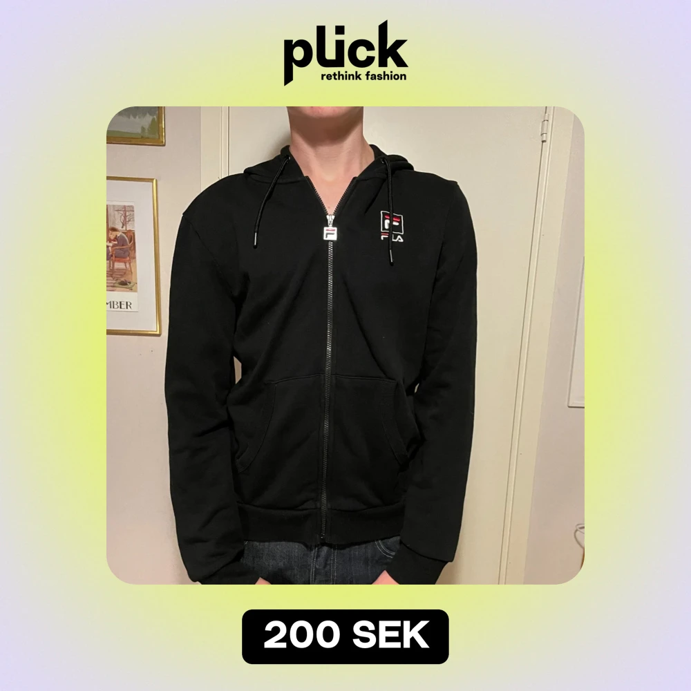 Säljer en svart hoodie från Fila i storlek L