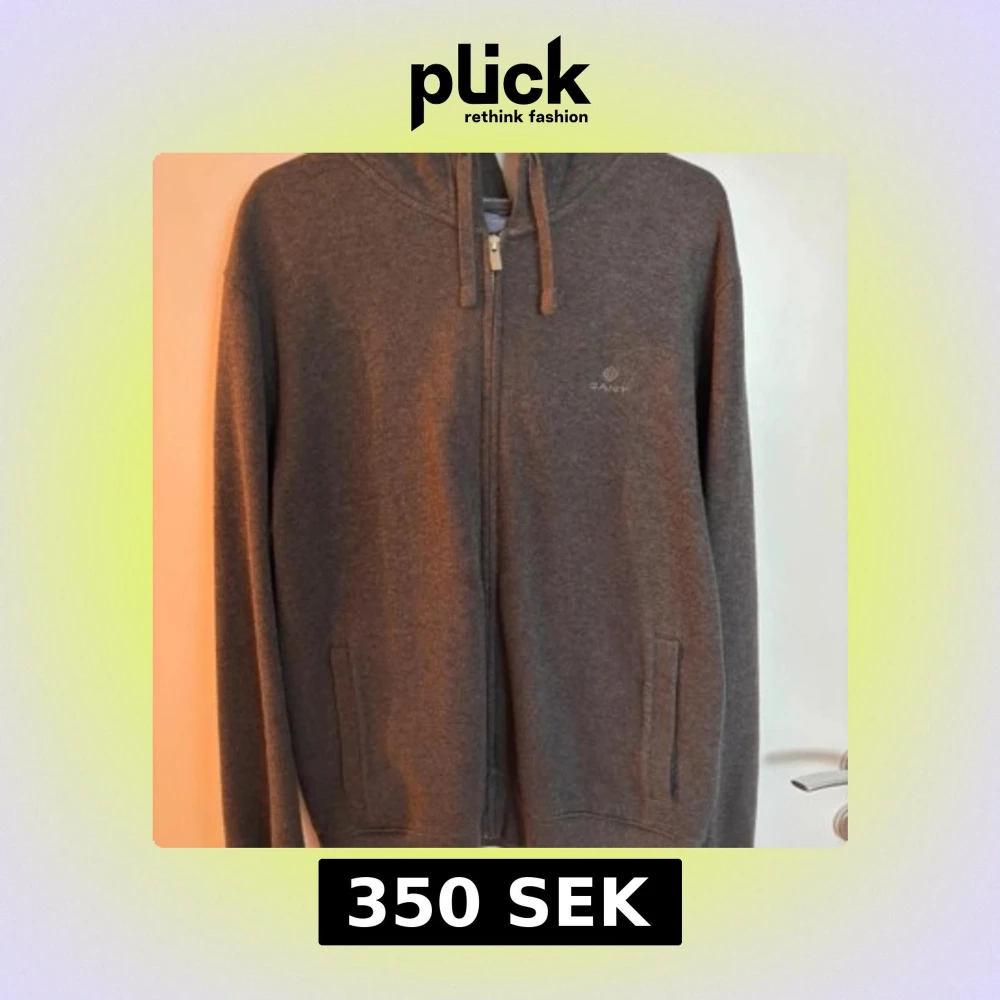Säljer en stilren grå hoodie från GANT med dragkedja och justerbar huva. Perfekt för en avslappnad look. Den har långa ärmar och två praktiska fickor framtill.