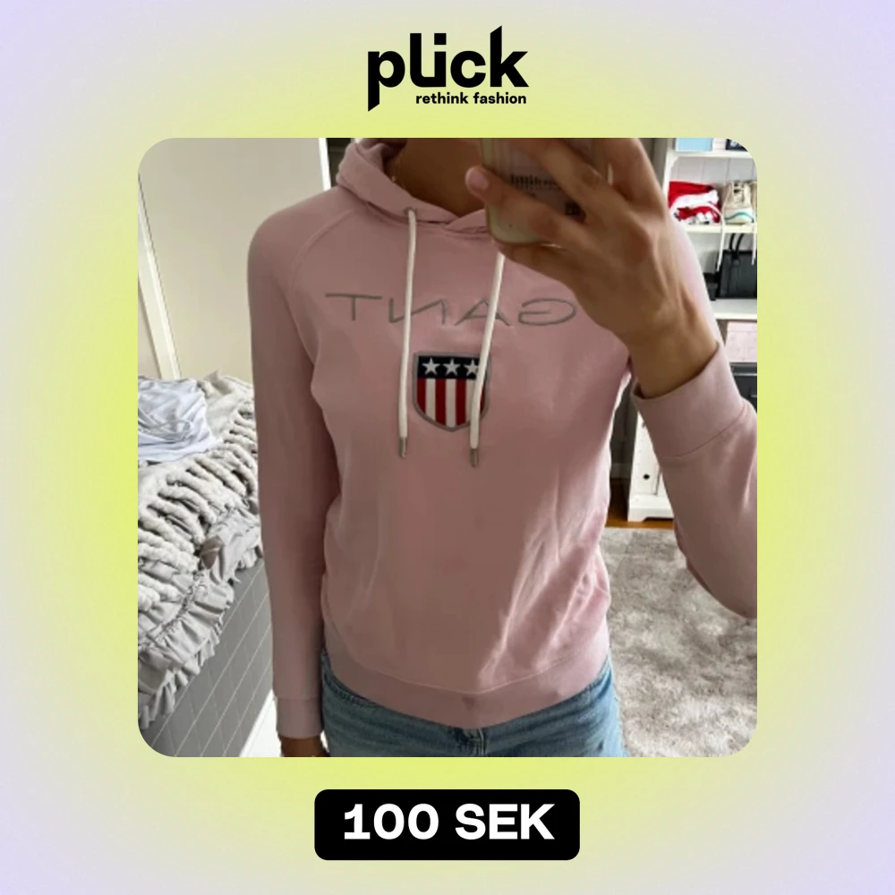 Säljer en superfin rosa hoodie från GANT i storlek xs. Säljer då den inte kommer till användning längre💖